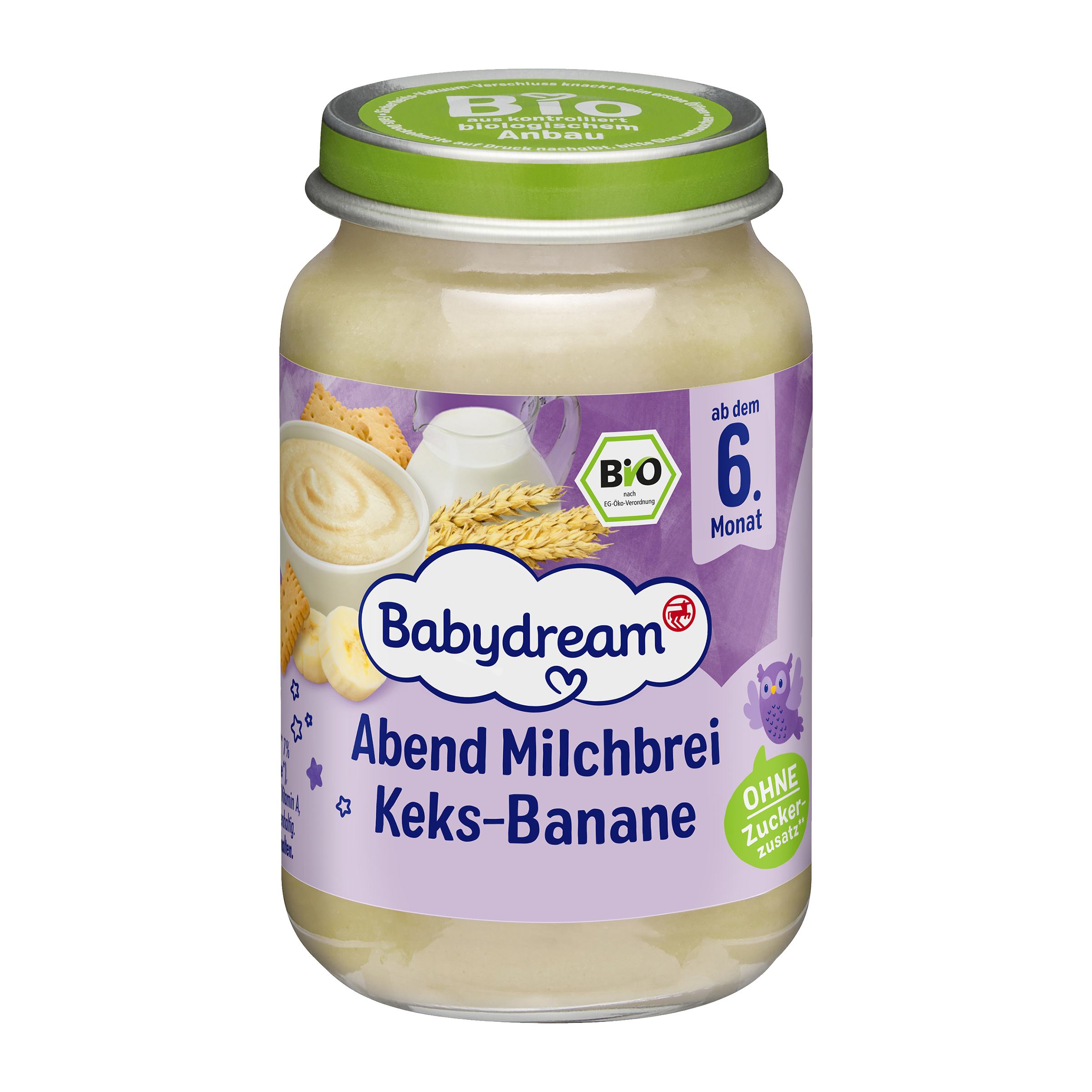 Plnotučné mléko * 50%, voda, odstředěné mléko *, sušenková mouka * 7% ( pšeničná mouka *, syrovátkový produkt *, máslo *, pšeničný škrob *), banány * 2,4%, pšeničná krupice *, uhličitan vápenatý, vitamín B1, vitamín A, vitamin D.