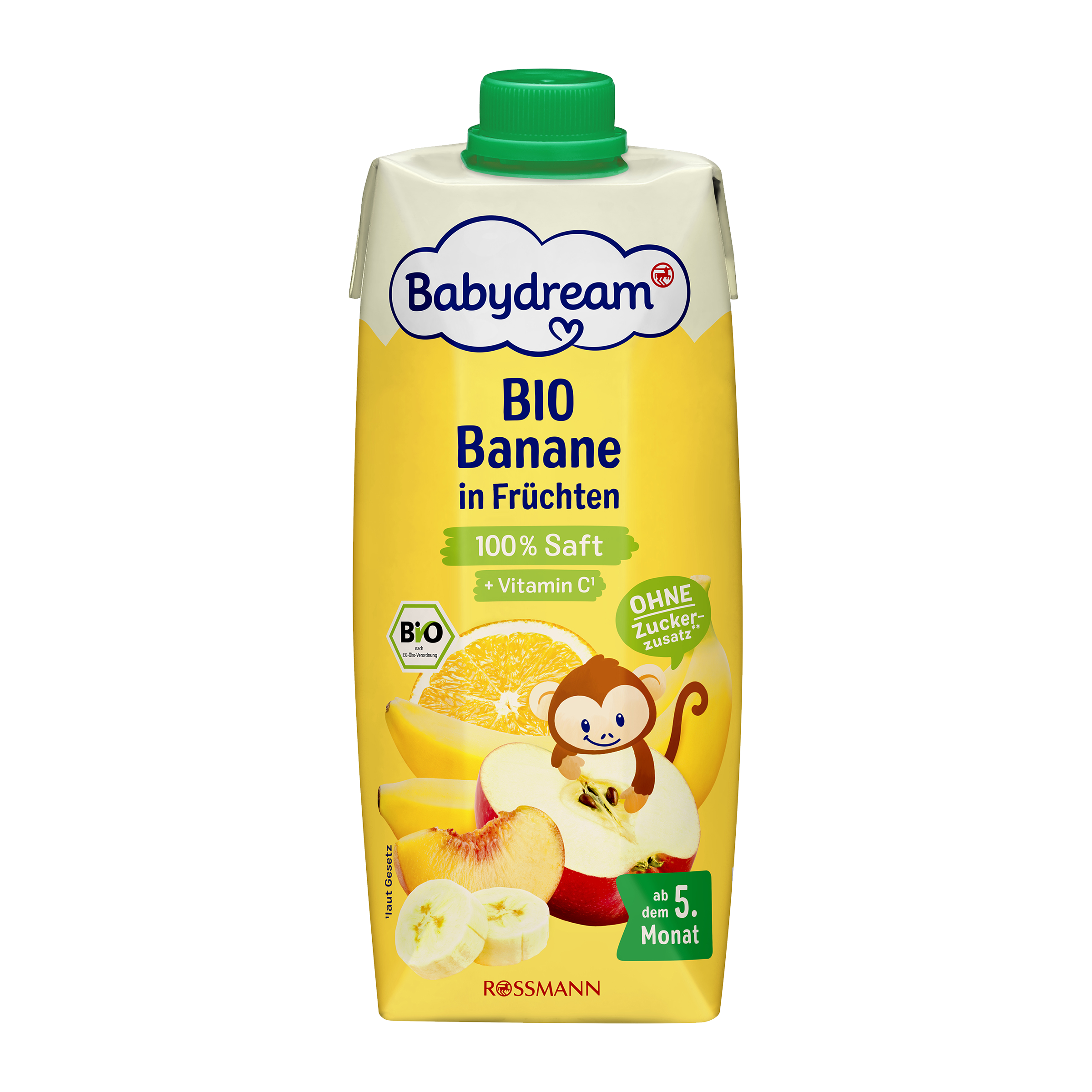 BIO ovocná šťáva z několika druhů ovoce, s vitaminem C – pro kojence a malé děti od začátku 5. měsíce věku. Pasterováno.
