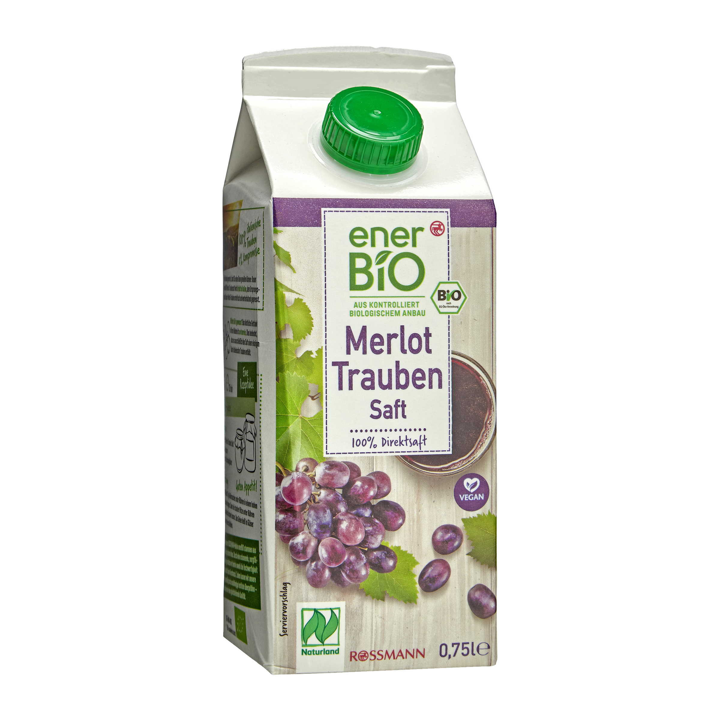 100 % italských hroznů Merlot, 0 % kompromisů. Vinná réva pro tento nápoj enerBiO je ručně sklizená a lisuje se v Itálii, což je země původu těchto hroznů Merlot a svým čerstvým zpracováním si zachová svou plnou hodnotu.
