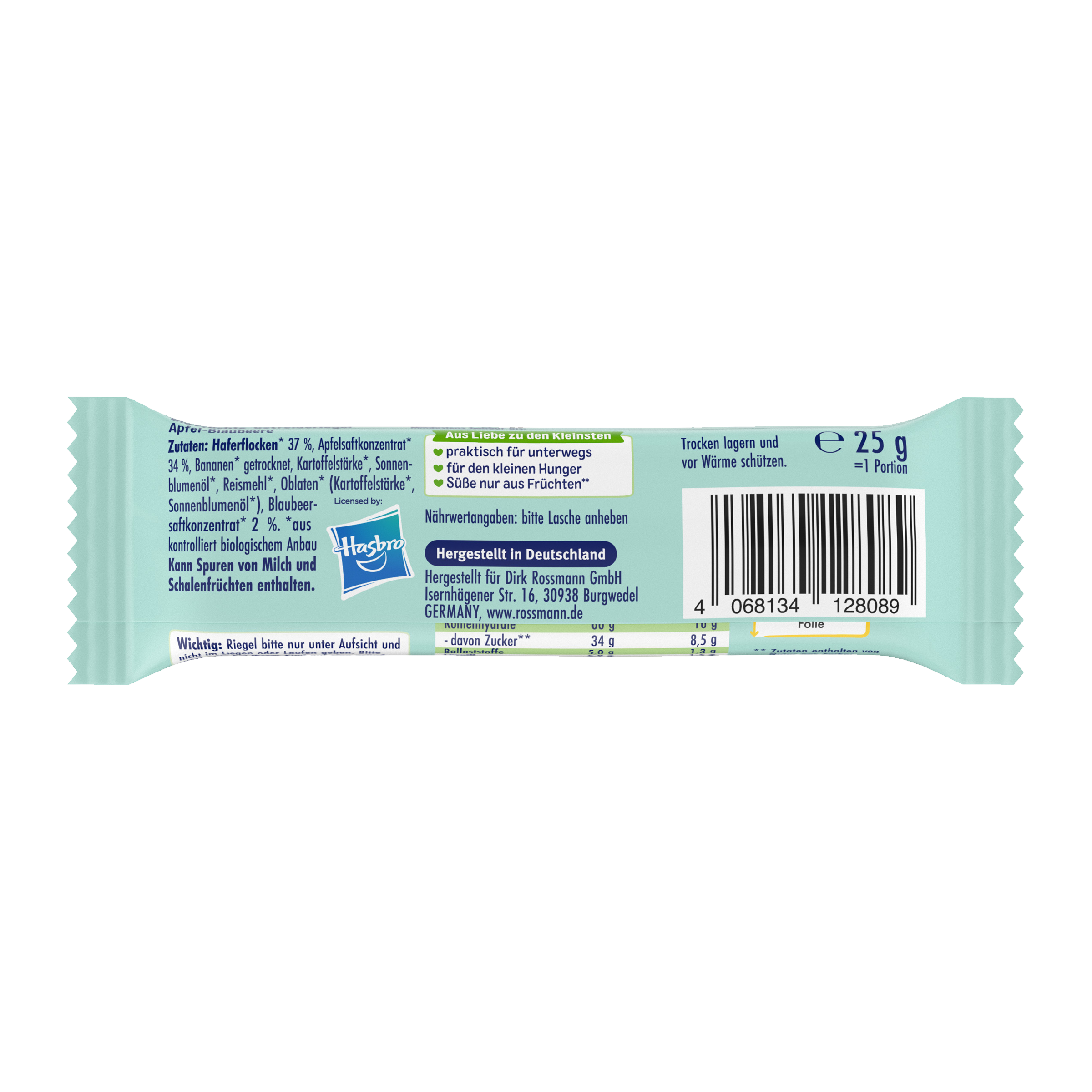Ovesné vločky* 37 %, jablečný koncentrát* 34 %, sušené banány*, bramborový škrob*, slunečnicový olej*, rýžová mouka*, oplatky* (bramborový škrob*, slunečnicový olej*), koncentrát borůvkové šťávy* 2 %.