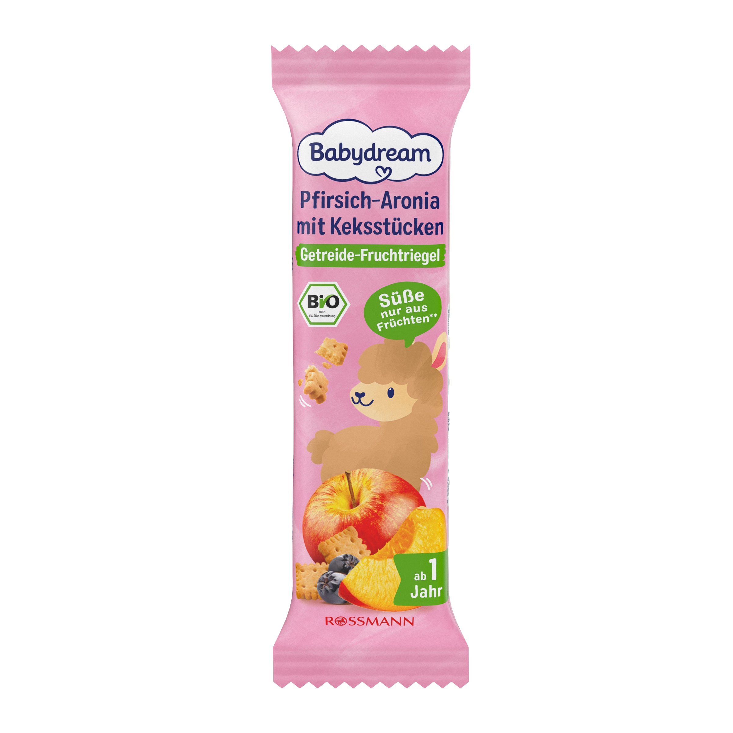 Jablečný koncentrát* 32 %, OVESNÉ VLOČKY*, sušené banány* 16 %, kukuřičné lupínky z kukuřice, škrob*, koncentrát ze šťávy z višní* 6 %, slunečnicový olej*, koncentrát ze šťávy z černého rybízu*, oplatky* (škrob*, slunečnicový olej*).