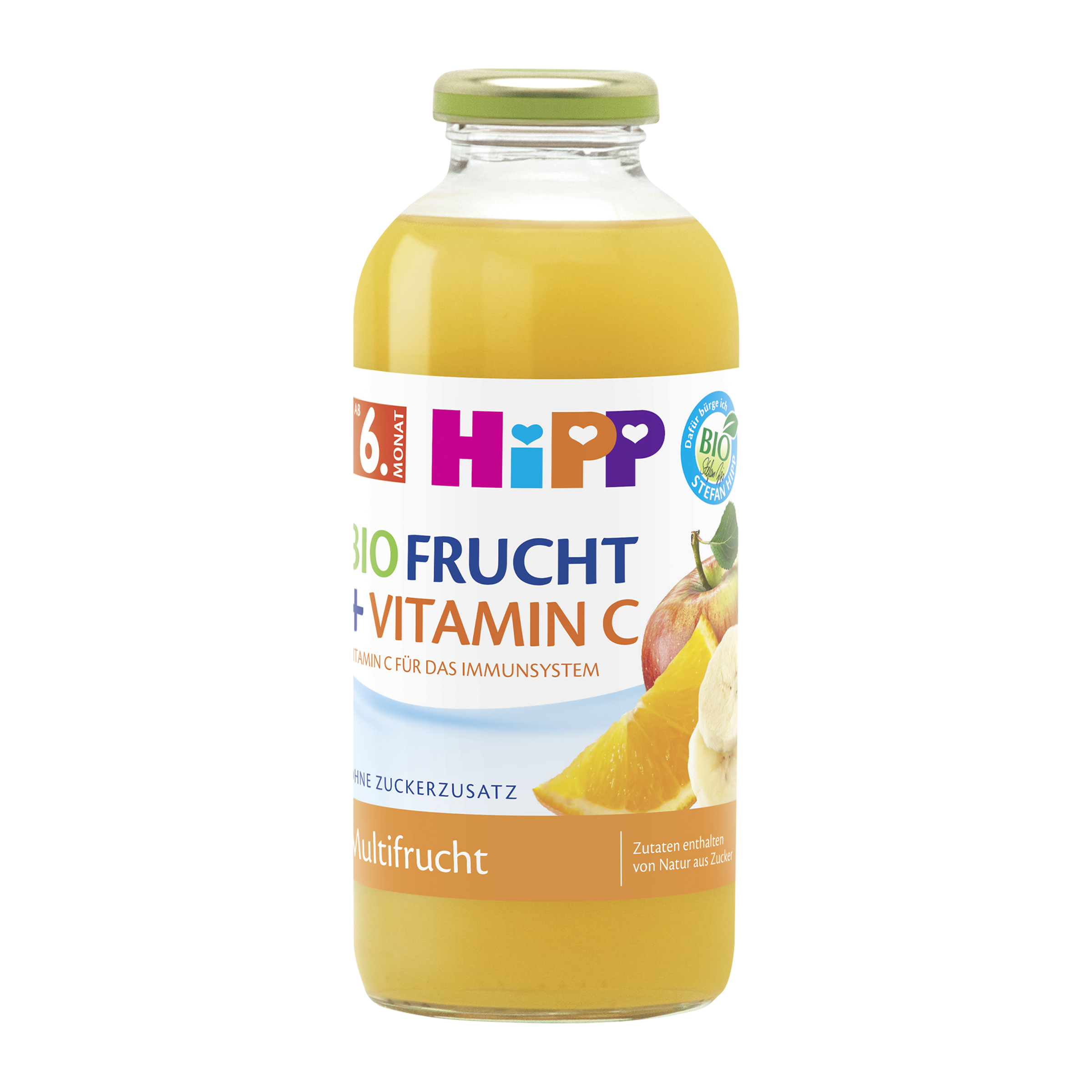 Ovocný nektar s vitamínem C. Vitamín C přispívá ke správné funkci imunitního systému a také vstřebávání železa. S vodou, která pochází z pramene George Hippa.