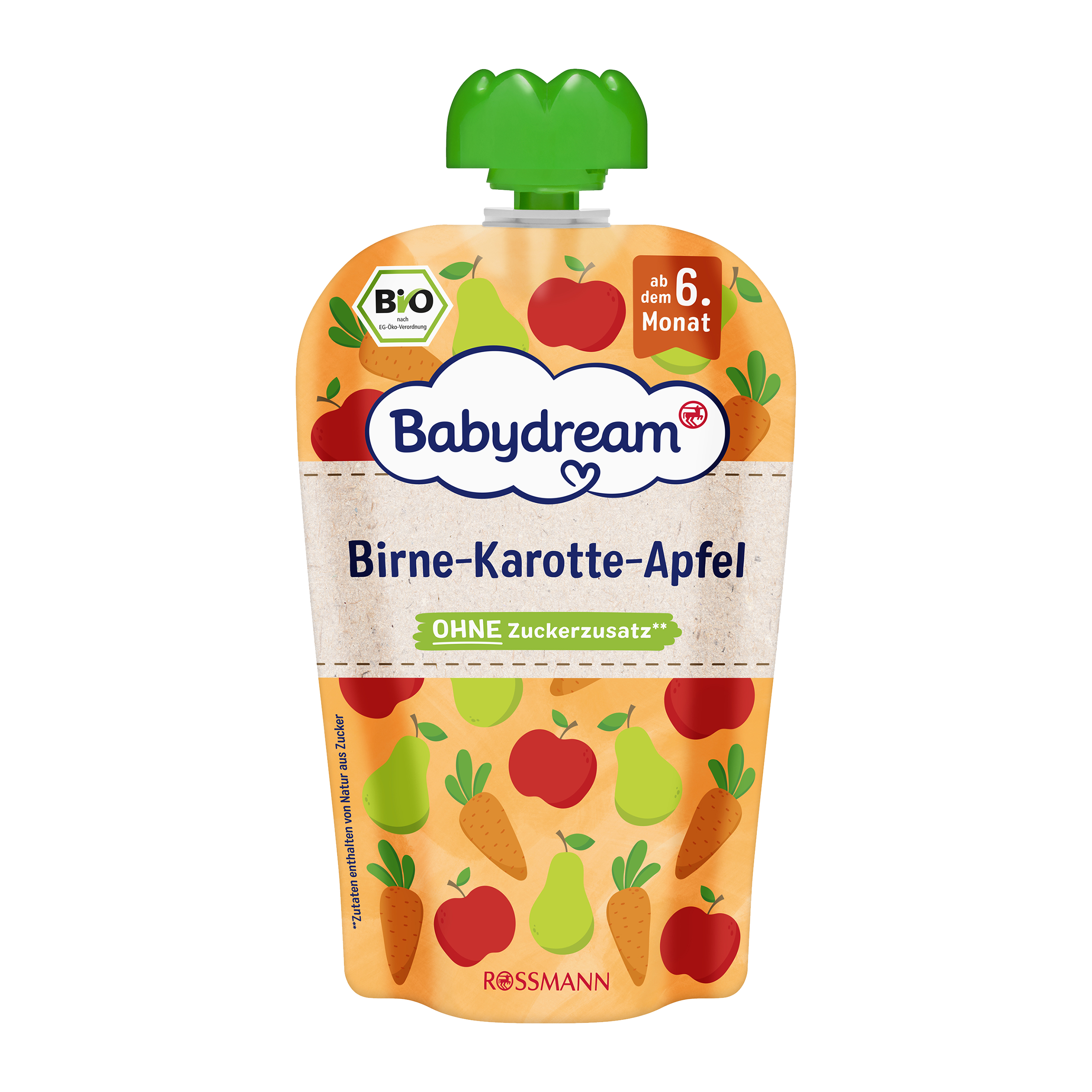 Jablko* 59,9%; hruška* 20%; mrkev* 20%; koncentrát citronové šťávy, antioxidant: kyselina L- askorbová