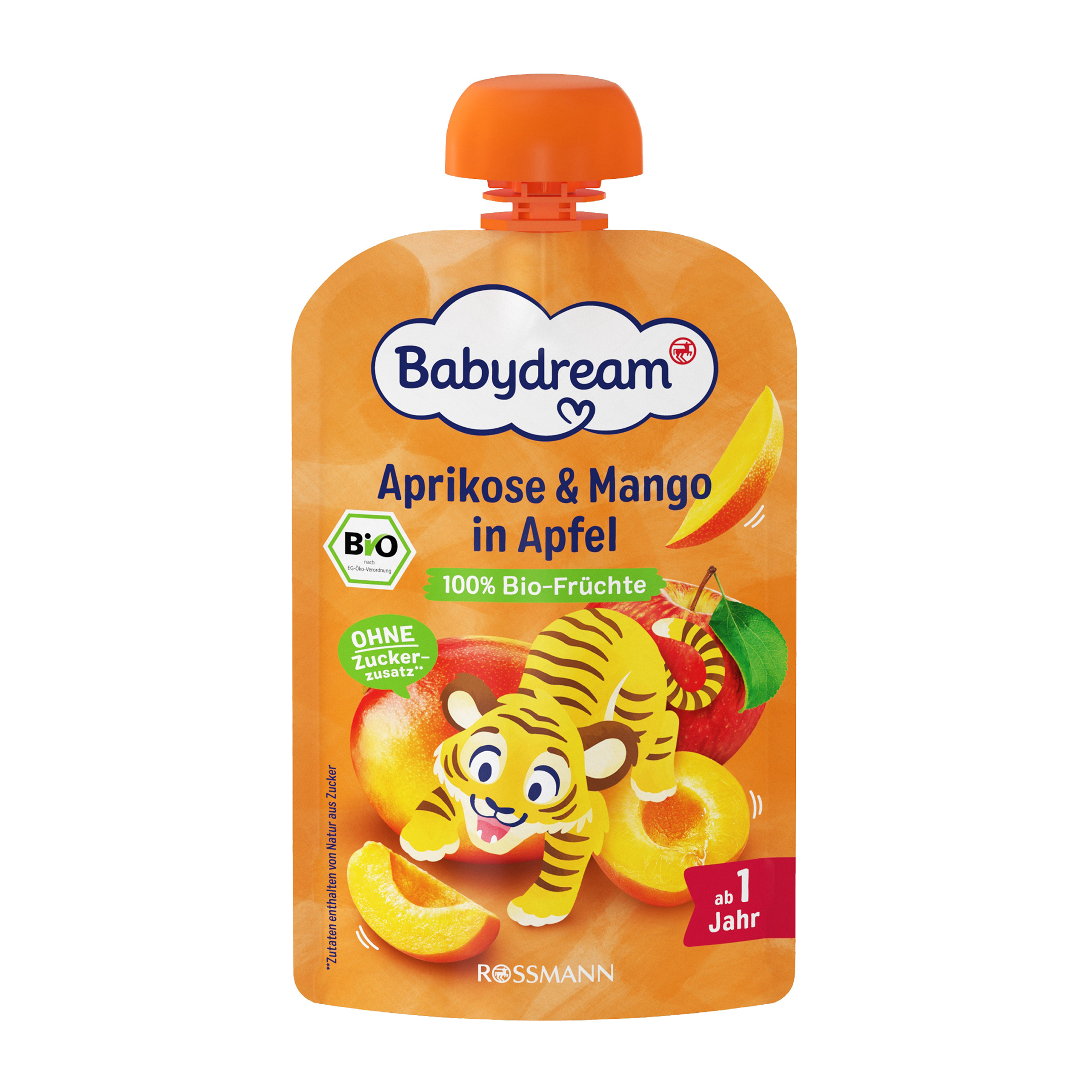 Jablka* 70 %, meruňky* 20 %, mango* 10 %, antioxidant: kyselina askorbová.
