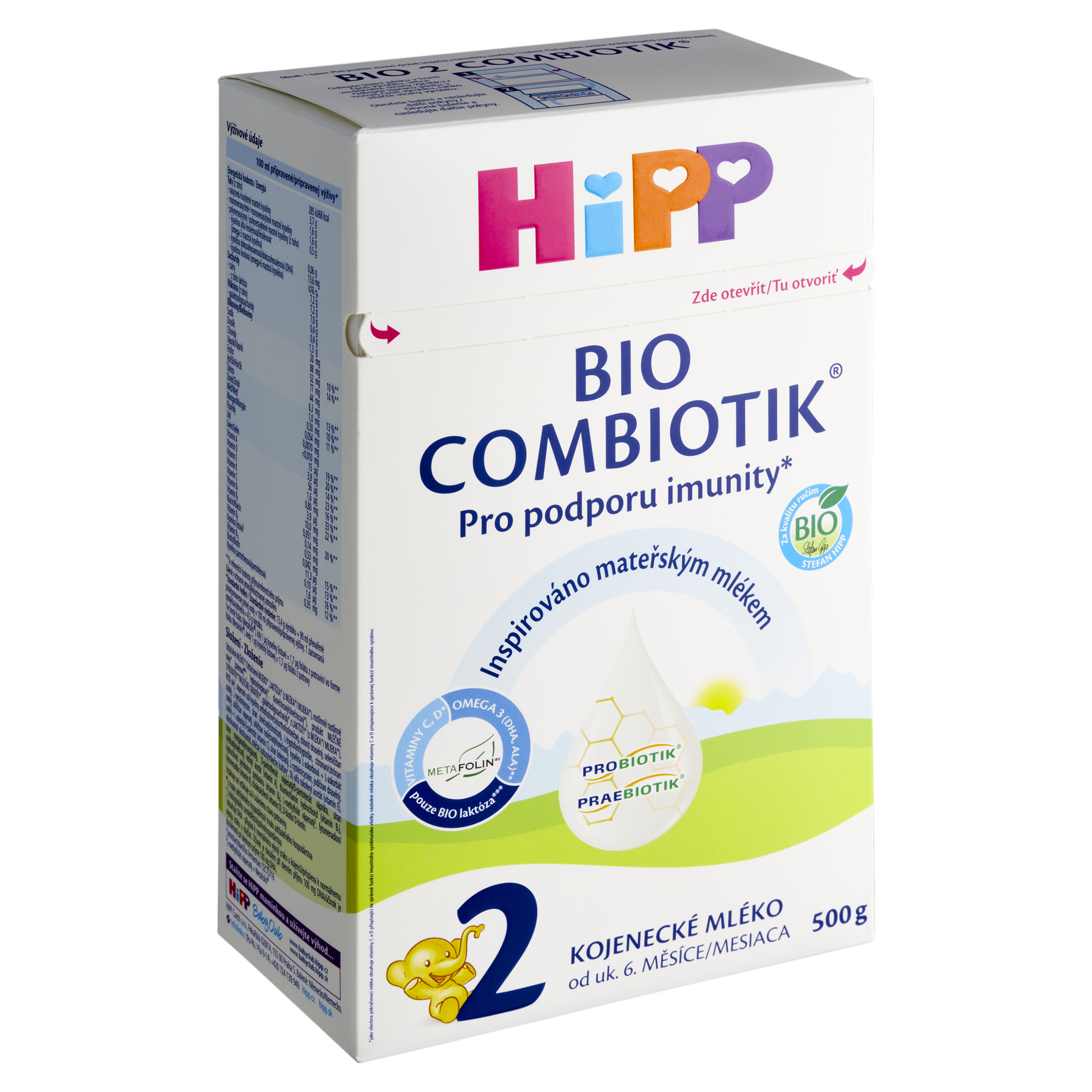 Důležitá upozornění Výlučné kojení je v prvních šesti měsících pro Vaše dítě nejlepší. HiPP 2 BIO Combiotik není vhodný jako náhrada mateřského mléka během prvních šesti měsíců života. HiPP 2 BIO Combiotik® je určený pro výživu kojenců od ukončeného 6. měsíce a má být součástí smíšené stravy. Není vhodný jako jediný zdroj výživy. Rozhodnutí o zahájení podávání příkrmů, včetně jakékoliv výjimky z pravidla šesti měsíců by mělo být přijímáno pouze na základě doporučení lékaře nebo osoby kvalifikované v oblasti výživy, farmacie nebo péče o matku a dítě, v závislosti na individuálních potřebách kojence. Podobně jako mateřské mléko obsahují kojenecké výživy sacharidy, které jsou důležitou součástí výživy. Častý nebo trvalý kontakt zubů se sacharidy může způsobit vznik zubního kazu. Proto nenechávejte Vaše dítě pít z láhve po dlouhou dobu a naučte ho co nejdříve pít z hrnečku. Věnujte pozornost vyvážené stravě a zdravému životnímu stylu Vašeho dítěte.