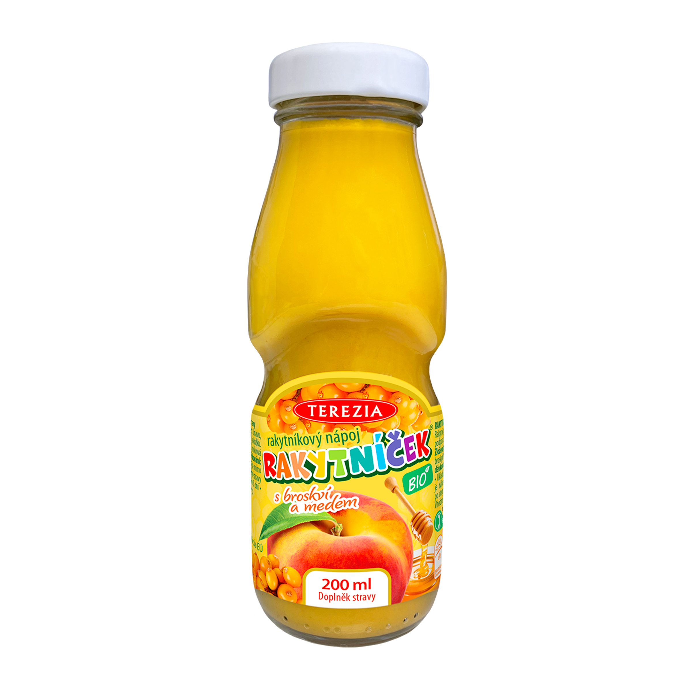 BIO rakytníkový nápoj s broskví a medem, doplněk stravy