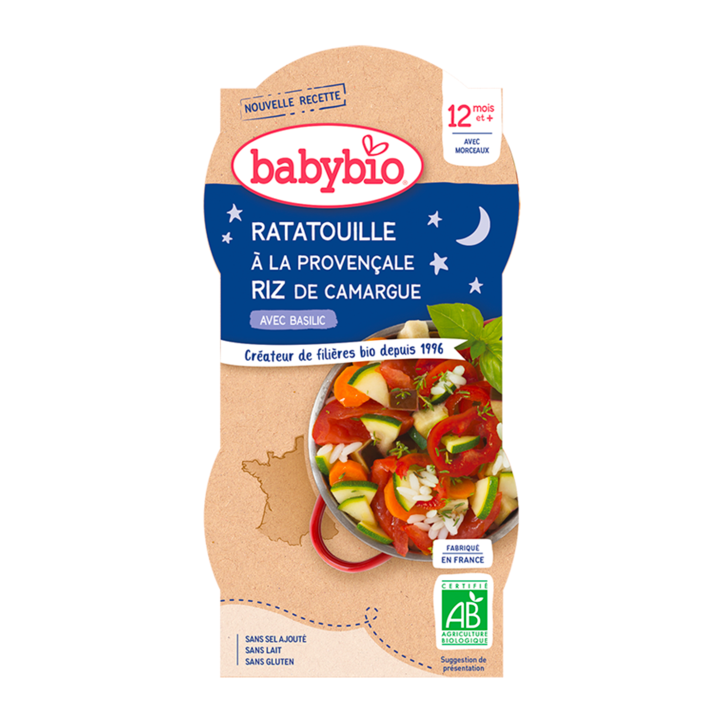 Bio výživa pro kojence od ukončeného 12. měsíce. Večerní jídlo sbalené na cesty v praktické kapsičce. Najdete v něm prvotřídní zeleninu z ekologického zemědělství - třeba francouzskou mrkev, rajčatové pyré z Itálie, lahodné brambory, cuketu, papriky nebo lilek. Na závěr jsme přidali trochu olivového oleje, tymiánu a bazalky. Dobrota, po které se bude spinkat jedna radost. Bez přidaného cukru. Bez palmového oleje. Bez přidané soli. Bez chemických konzervačních látek, dochucovadel a zahušťovadel. Vařené v páře.