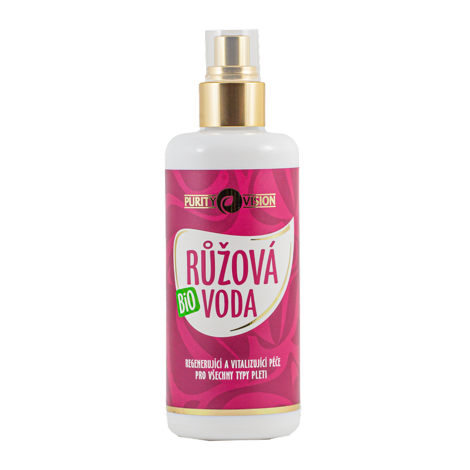 100% bio růžová voda je vyrobená šetrnou parní destilací ze vzácné růže Damašské, která roste v srdci bulharských hor v růžovém údolí. Sběr začíná již od brzkých ranních hodin, kdy se v květu rostlin tvoří největší množství esenciálních olejů, které slouží jako ochrana před nízkými teplotami v bulharských horách. Zamilujete si ji pro její krásnou vůni a všestranné využití. Vyzkoušejte ji jako pleťovou vodu na tonizaci a regeneraci či fixaci make-upu. Je nepostradatelná jako podklad pro pleťové oleje Purity Vision®. Hydratuje a zpevňuje pleť, omezuje vznik vrásek a je ideální jako regenerující obklad na oči.