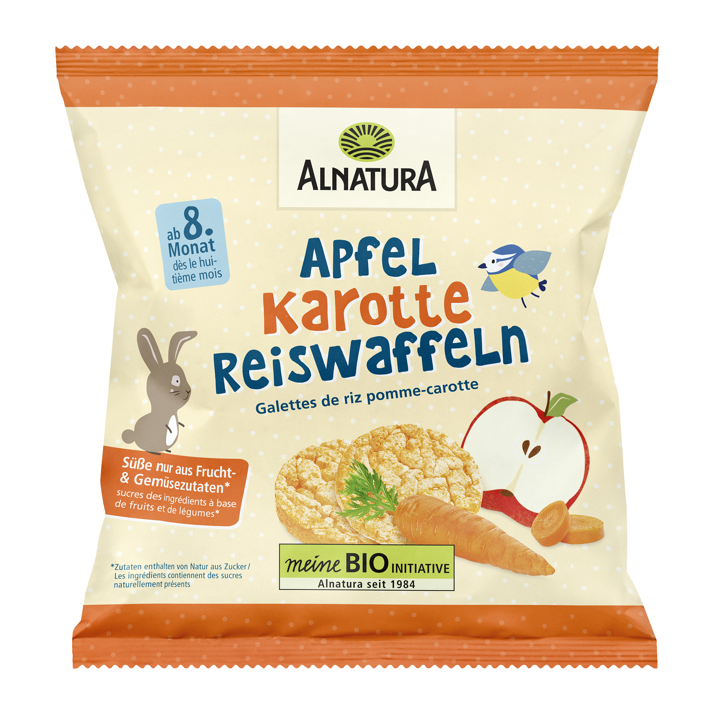 BIO rýžové plátky s koncentrátem mrkvové a jablečné šťávy pro kojence od 8 měsíců a batolata.
