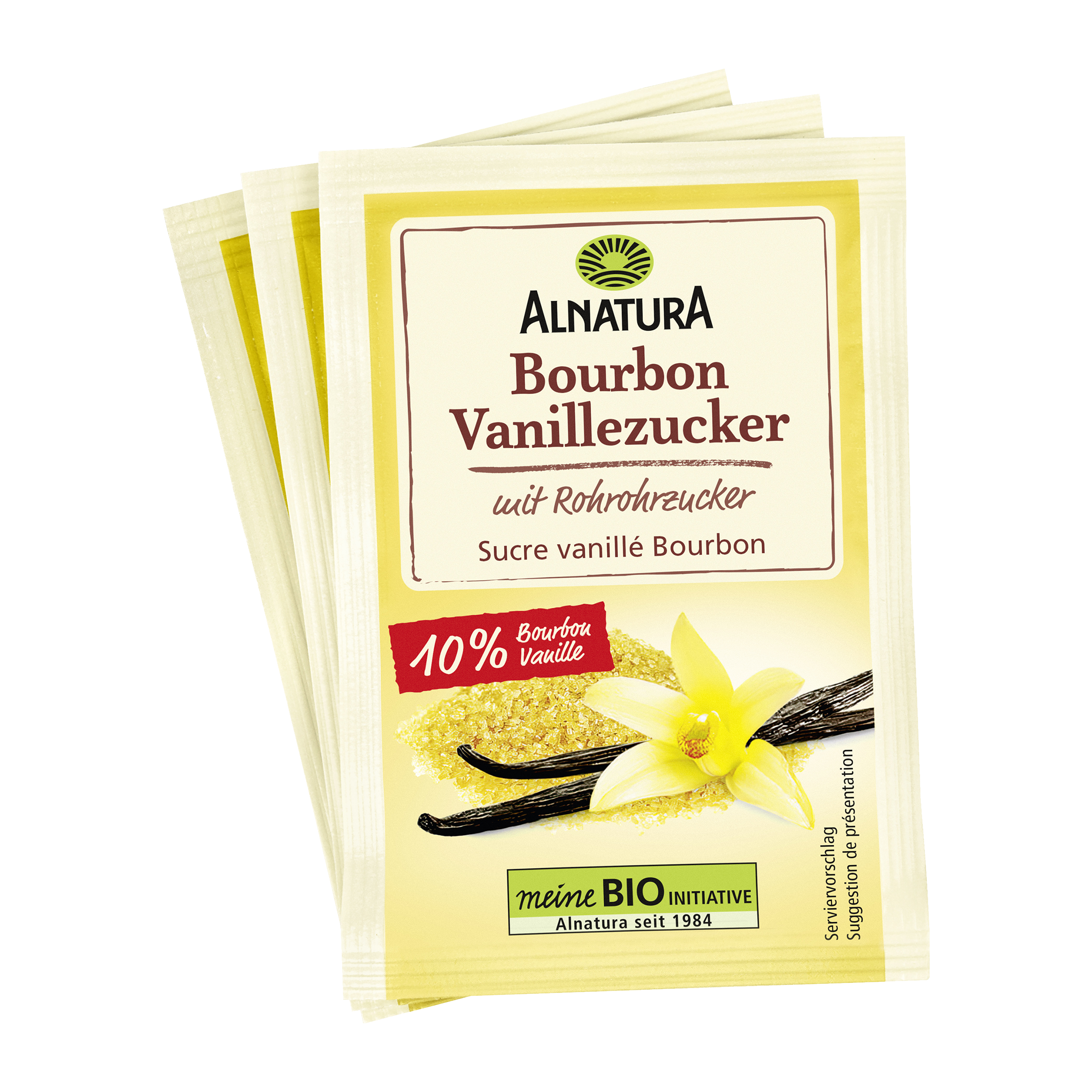 Vanilkový lusk je považován za královnu mezi kořením. Díky své jemné, mnohovrstevnaté vůni zjemní nejen dezerty, pečivo nebo ovocné pokrmy, ale může také dodat vynikající tón pikantním pokrmům. Vanilkový cukr Alnatura kombinuje surový třtinový cukr s deseti procenty mletých bourbonských vanilkových bobů - obojí z ekologického zemědělství. Každé balení obsahuje tři sáčky.