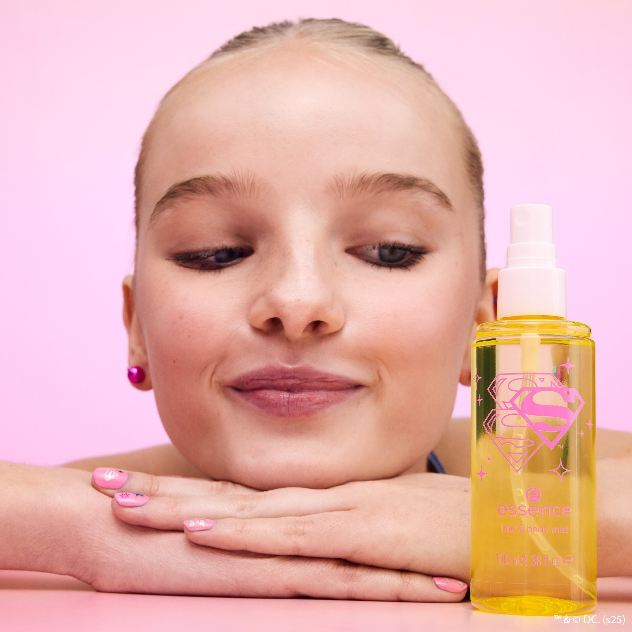 Osvěžte se a oživte na cestách s essence Superman osvěžující mlhou na vlasy a tělo! Tato kompaktní mlha dodá vašim vlasům a tělu okamžité osvěžení a zanechá lehkou svěží tropickou vůni založenou na ananasových a kokosových tónech, která vydrží. Je ideální pro úpravy po celý den a je tak vaším dokonalým superhrdinským společníkem pro rychlé osvěžení, ať jste kdekoli. Jednoduše nastříkněte na tělo a vlasy – vyhněte se tváři – a buďte připraveni ovládnout den!