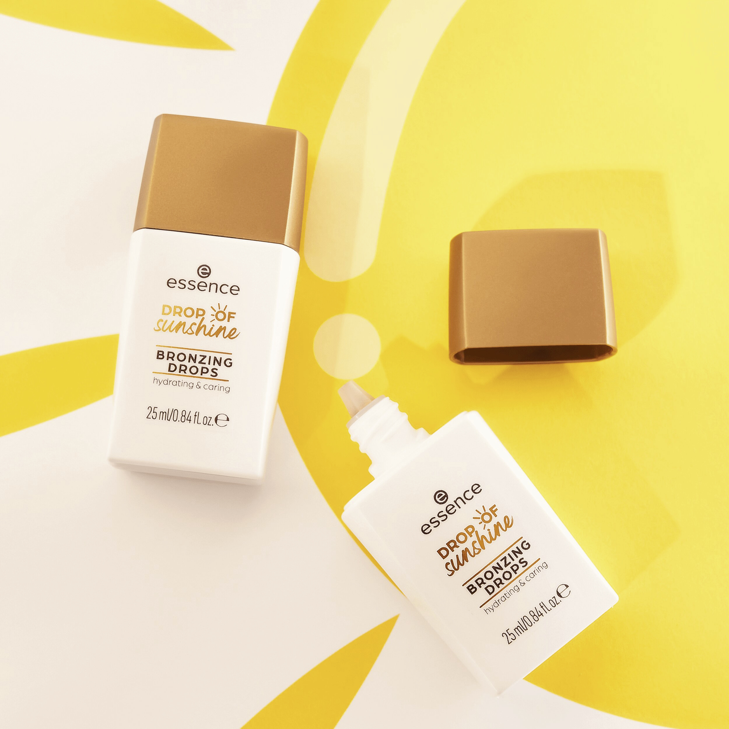 Zvýrazněte rozjasnění vaší pokožky bronzujícími kapkami essence DROP OF sunshine. Kapky mají neutrální bronzový odstín s jemnými perličkami a snadno se zapracují do pokožky, což vám dodá zdravý sluncem opálený look. Díky obsaženému glycerinu dostane vaše pokožka hydrataci, kterou si zaslouží – to vše s nebeskou vůni kokosu. Před aplikací bronzujících kapek lahvičku dobře protřepejte. Můžete je buď použít samostatně pro intenzivnější efekt, nebo je smíchat s vaší oblíbenou pleťovou péčí nebo make-upem pro celkové rozjasnění.