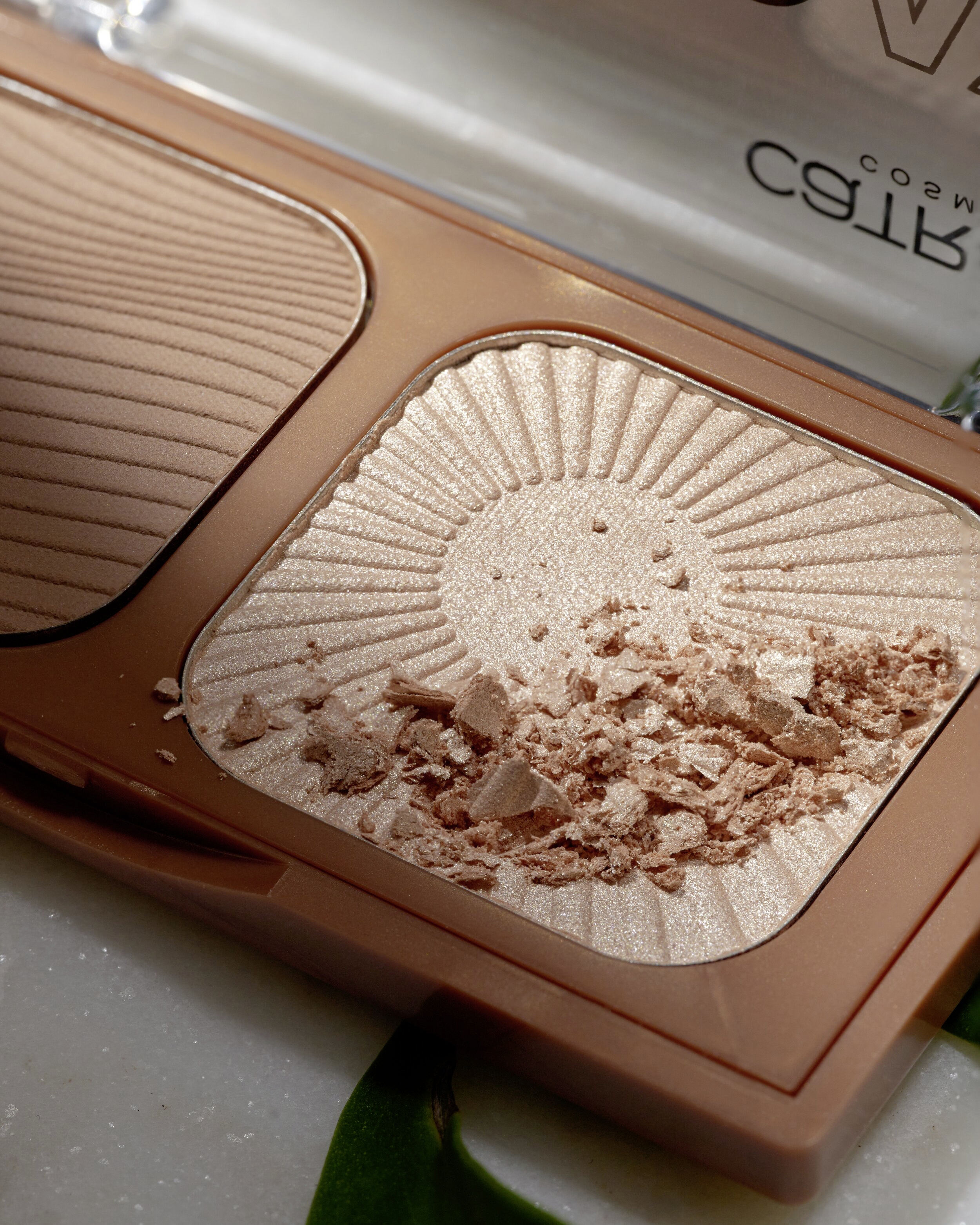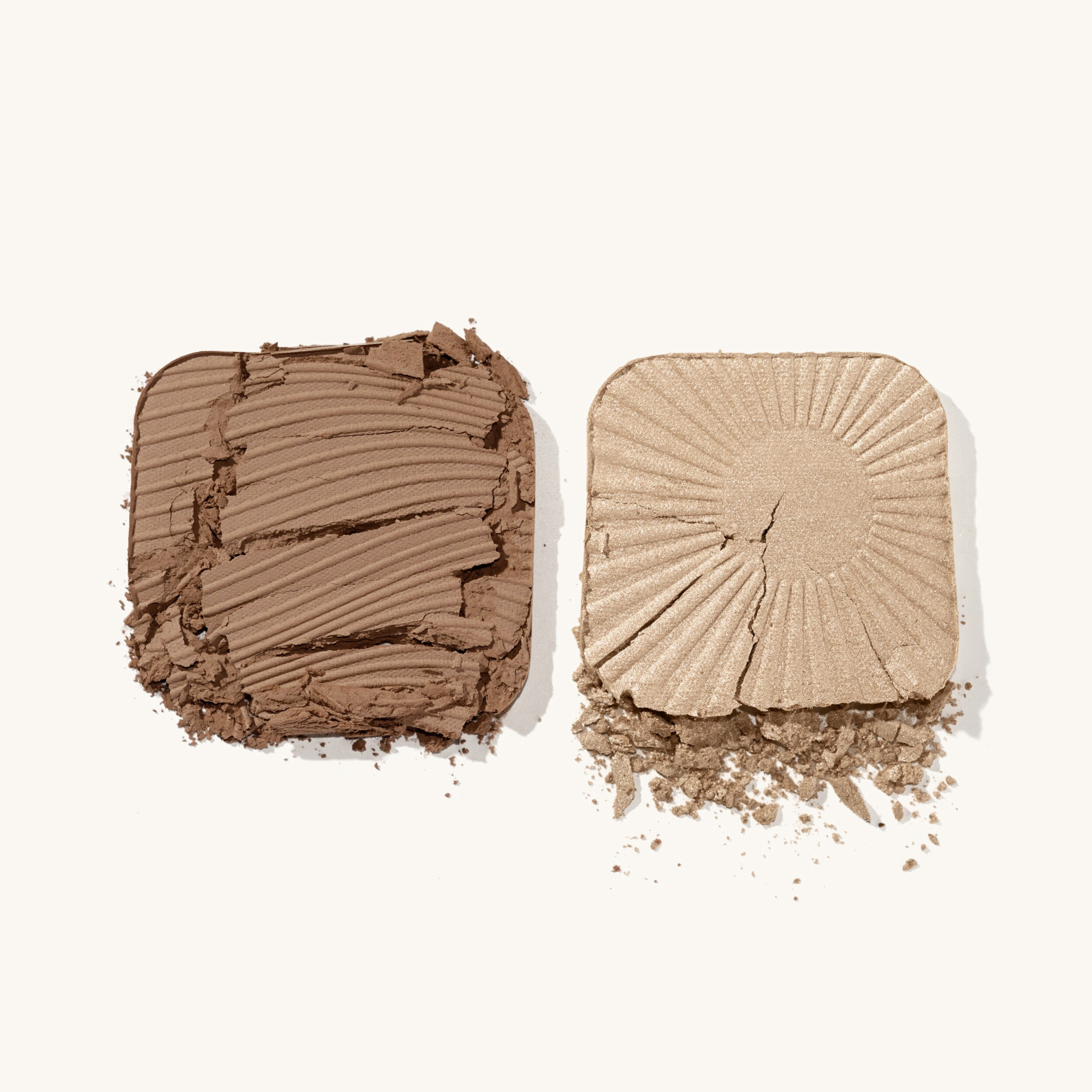 Bronzer - INGREDIENTS: MICA, ZEA MAYS (CORN) STARCH, KAOLIN, SHEA BUTTER ETHYL ESTERS, COPERNICIA CERIFERA CERA (COPERNICIA CERIFERA (CARNAUBA) WAX), RICINUS COMMUNIS (CASTOR) SEED OIL, MACADAMIA INTEGRIFOLIA/TETRAPHYLLA SEED OIL, TOCOPHEROL, HELIANTHUS ANNUUS (SUNFLOWER) SEED OIL, p-ANISIC ACID, MAGNOLIA OFFICINALIS BARK EXTRACT, CITRIC ACID, CI 77491 (IRON OXIDES), CI 77492 (IRON OXIDES), CI 77499 (IRON OXIDES), CI 77742 (MANGANESE VIOLET), CI 77891 (TITANIUM DIOXIDE). Highlighter - INGREDIENTS: MICA, TALC, CETEARYL ETHYLHEXANOATE, MAGNESIUM MYRISTATE, ORYZA SATIVA (RICE) POWDER, BORON NITRIDE, OCTYLDODECYL STEAROYL STEARATE, COPERNICIA CERIFERA CERA (COPERNICIA CERIFERA (CARNAUBA) WAX), CAPRYLYL GLYCOL, TIN OXIDE, HEXYLENE GLYCOL, PHENOXYETHANOL, CI 77491 (IRON OXIDES), CI 77891 (TITANIUM DIOXIDE).