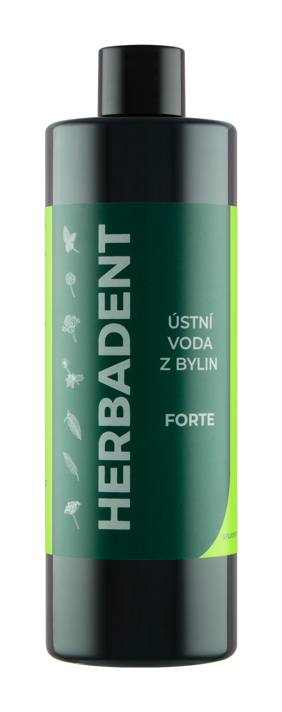 Bylinná ústní voda Herbadent Forte byla vyvinuta pro intenzivní péčí o zuby a dásně. Obsahuje dvojnásobné množství extraktu Herbadent ze 7 bylin a v kombinaci s fluoridy posiluje sklovinu zubů. Léty prověřená kombinace extraktu Herbadent podporuje regeneraci a hojení podrážděných dásní a sliznic, působí antisepticky a zmírňuje zápach z úst. Díky obsahu fluoridů (450 ppm) chrání před vznikem zubního kazu. Ústní vodu vyrábíme dle tradiční receptury bez použití chemických barviv.