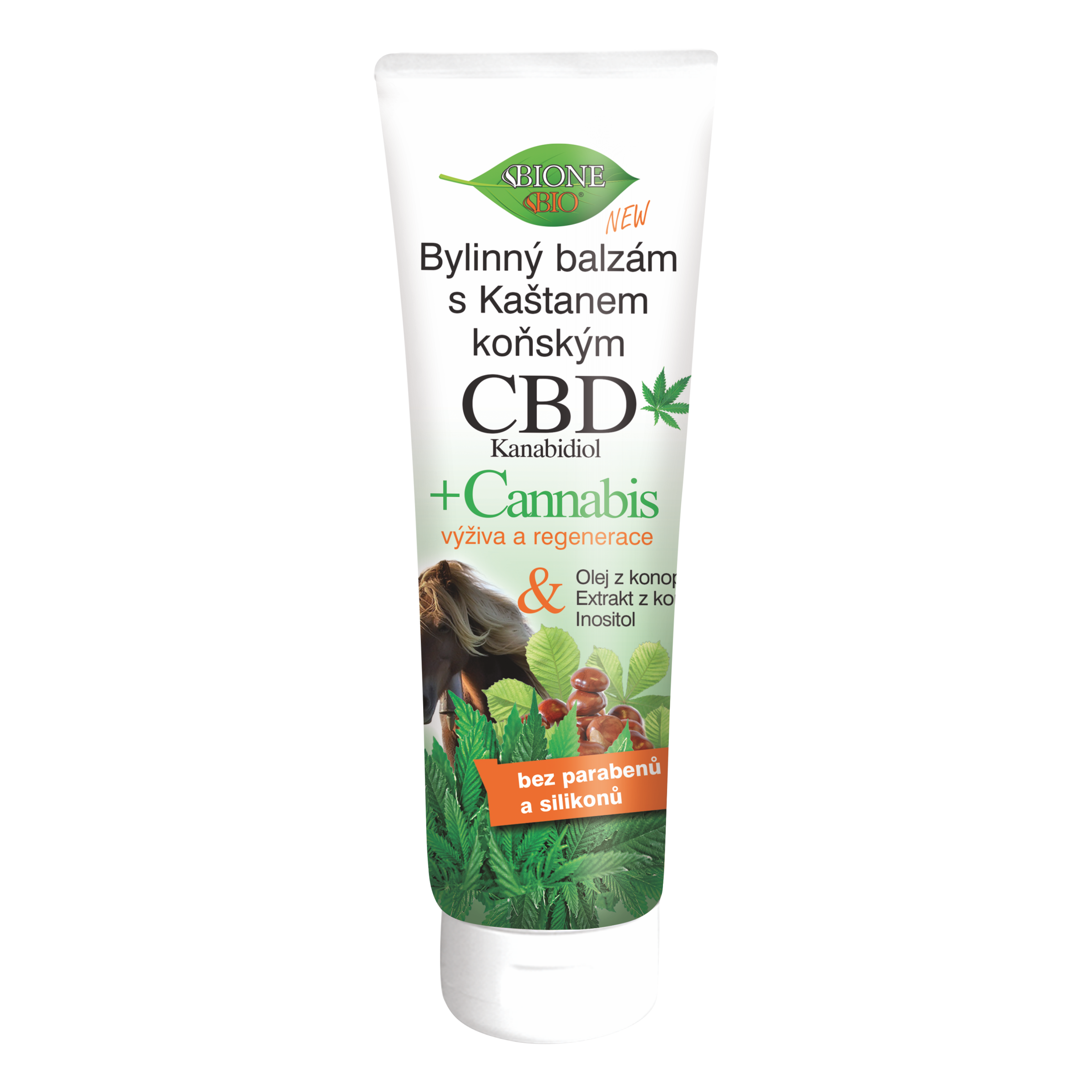 Lehký masážní balzám na unavené tělo – emulgel s „koňskou silou“ kaštanu koňského. Masážní balzám s univerzálním použitím. Extrakt kaštanu, kostival, mentol, kafr, eukalyptus, boswellie a další složky působí při masáži pokožky relaxačně a blahodárně na pohybový aparát těla. Používá se k relaxační a uvolňovací masáži pokožky v oblastech kloubů, na unavené a těžké nohy, při svalovém zatuhnutí, pro relaxační masáže natažených šlach a při různých zhmožděninách. Masáží se pokožka i ostatní tkáně prokrví a prohřejí, uvolní se svalový tonus. Balzám Cannabis obsahuje nejen konopný olej, ale i extrakt z celé zelené listové části rostliny a nyní nově i moderní složku CBD – kanabidiol! Tím dodává přípravku unikátnost a spotřebiteli maximum cenných látek z této výjimečné rostliny. Vedle nenasycených mastných kyselin, fytosterolů, fosfolipidů dodává i řadu antioxidantů, biominerálů, vitamínů, karotenoidů a chlorofylů. Extrakt i olej Cannabis je znám svým používáním v lidovém léčitelství pro své údajné protizánětlivé, antibakteriální, protialergické a regenerační vlastnosti na pokožku. Olej ze semínek rostliny Cannabis se v lidovém léčitelství s oblibou doporučuje na různé dermatitidy, u atopického ekzému, lupénky, akné a oparů. Olej poskytuje uklidňující a zvláčňující účinky, chrání pokožku před vysoušením a praskáním. Na pokožku v postižené oblasti naneste balzám a provádějte 5–15 min. masáž. Ošetřované místo ev. překryjte kouskem strečové kuchyňské fólie, ponechejte v klidu celou noc. Balzám dále obsahuje hydratační glycerin, rostlinné bambucké máslo, panthenol, allantoin a vitamín E. Rychle se vstřebává, zanechává příjemný nemastný pocit.