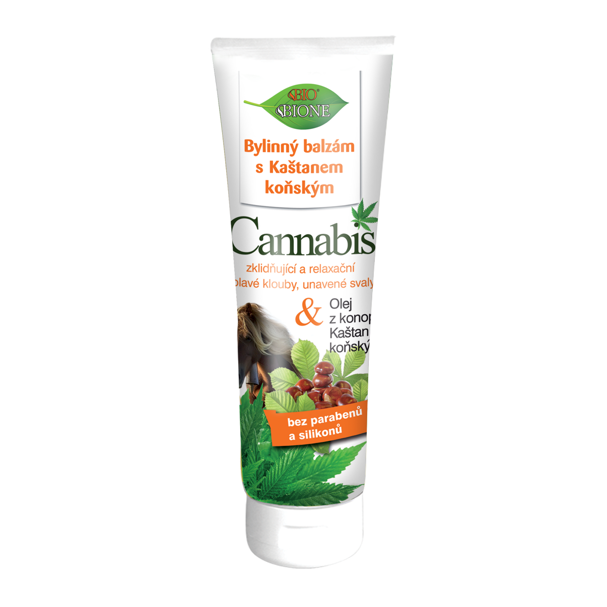 Lehký masážní balzám na unavené tělo – emulgel s „koňskou silou“ kaštanu koňského. Masážní balzám s univerzálním použitím. Extrakt kaštanu, kostival, mentol, kafr, eukalyptus, boswellie a další složky působí při masáži pokožky relaxačně a blahodárně na pohybový aparát těla. Používá se k relaxační a uvolňovací masáži pokožky v oblastech kloubů, na unavené a těžké nohy, při svalovém zatuhnutí, pro relaxační masáže natažených šlach a při různých zhmožděninách. Masáží se pokožka i ostatní tkáně prokrví a prohřejí, uvolní se svalový tonus. Balzám Cannabis obsahuje nejen konopný olej, ale i extrakt z celé zelené listové části rostliny. Tím dodává přípravku unikátnost a spotřebiteli maximum cenných látek z této výjimečné rostliny. Vedle nenasycených mastných kyselin, fytosterolů, fosfolipidů dodává i řadu antioxidantů, bio minerálů, vitamínů, karotenoidů a chlorofylů. Extrakt i olej Cannabis je znám svým používáním v lidovém léčitelství pro své údajné protizánětlivé, antibakteriální, protialergické a regenerační vlastnosti na pokožku. Olej ze semínek rostliny Cannabis se v lidovém léčitelství s oblibou doporučuje na různé dermatitidy, u atopického ekzému, lupénky, akné a oparů. Olej poskytuje uklidňující a zvláčňující účinky, chrání pokožku před vysoušením a praskáním. Balzám dále obsahuje hydratační glycerin, rostlinné bambucké máslo, panthenol, allantoin a vitamín E. Balzám využívá moderní akrylátový emulzní systém a je tedy velmi jemný. Rychle se vstřebává, zanechává příjemný nemastný pocit. Obsah tukové fáze: 4 % hm. Obsah neionogenních emulgátorů: 0,00 % hm.! Přípravek není léčivem a ani léčiva nenahrazuje.