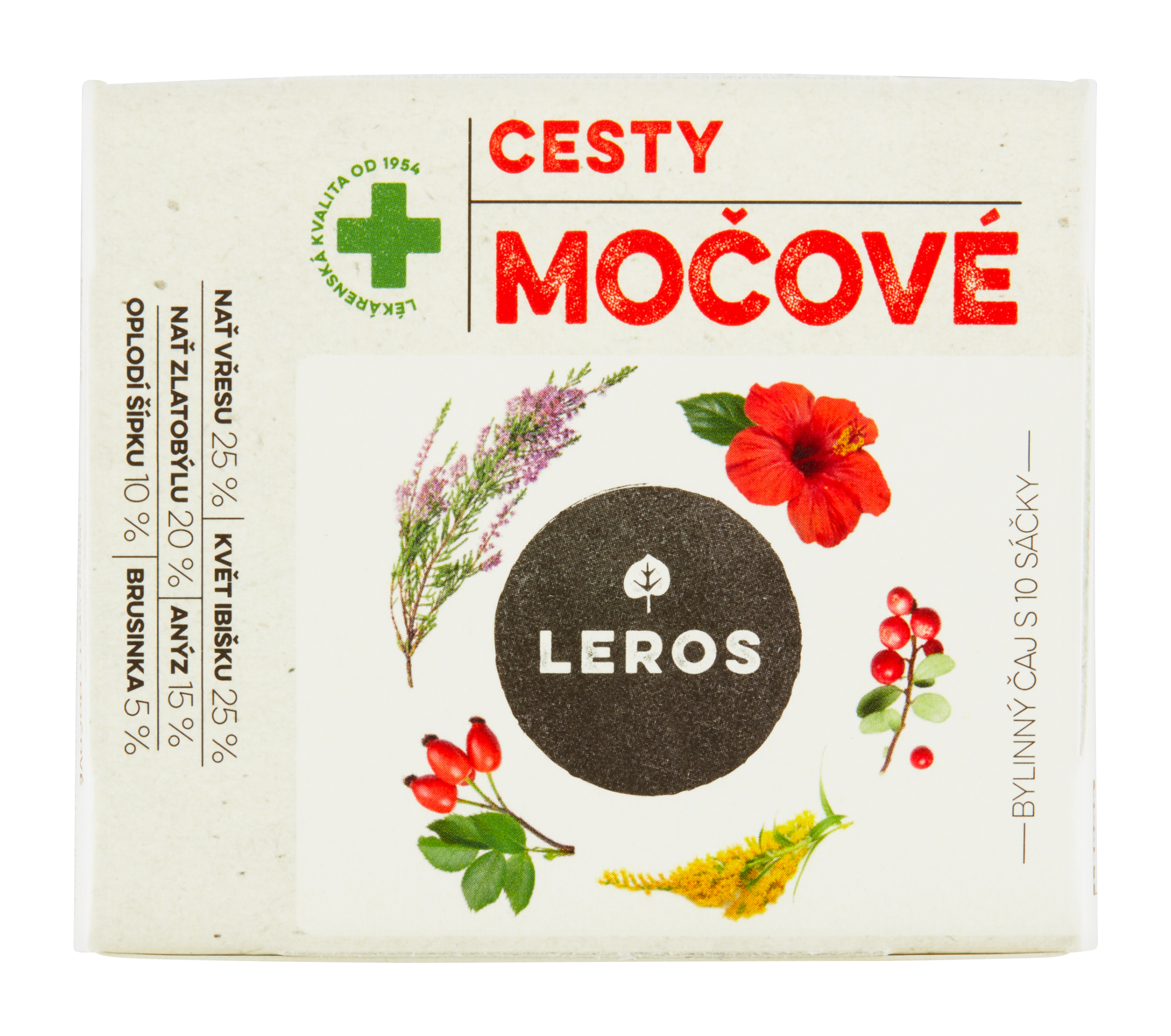 Bylinný čaj s brusinkou a zlatobýlem. Bylinná čajová směs obsahuje zlatobýl, vřes a květ ibišku, které přispívají k normální funkci močových cest.