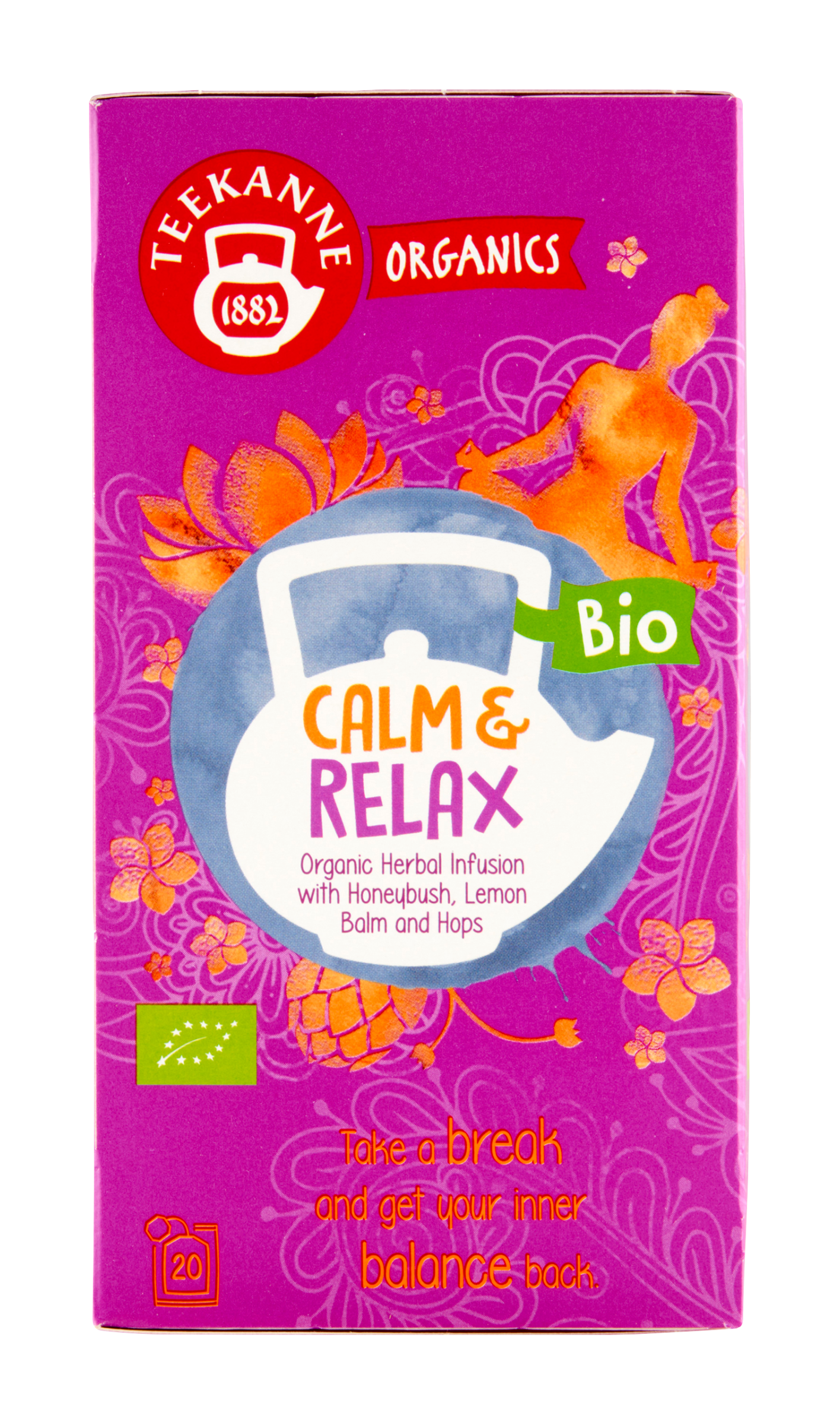 Teekanne Organics Calm & Relax je jemný BIO bylinný čaj s medovým keřem, meduňkou a chmelem. Udělejte si přestávku a získejte zpět svou vnitřní rovnováhu a klidnou mysl. Snažte se odpočívat a nechte volný průběh příjemným myšlenkám. Dokonalým společníkem Vám bude čaj Calm & Relax. Zastavte se a vychutnejte si příjemně lahodný šálek čaje. Teekanne Organics jsou ty nejlepší čaje v BIO kvalitě v inovativních trendy příchutích, což zaručí rozmanitost chutí v každém šálku - aby byl každý den o doušek lepší.