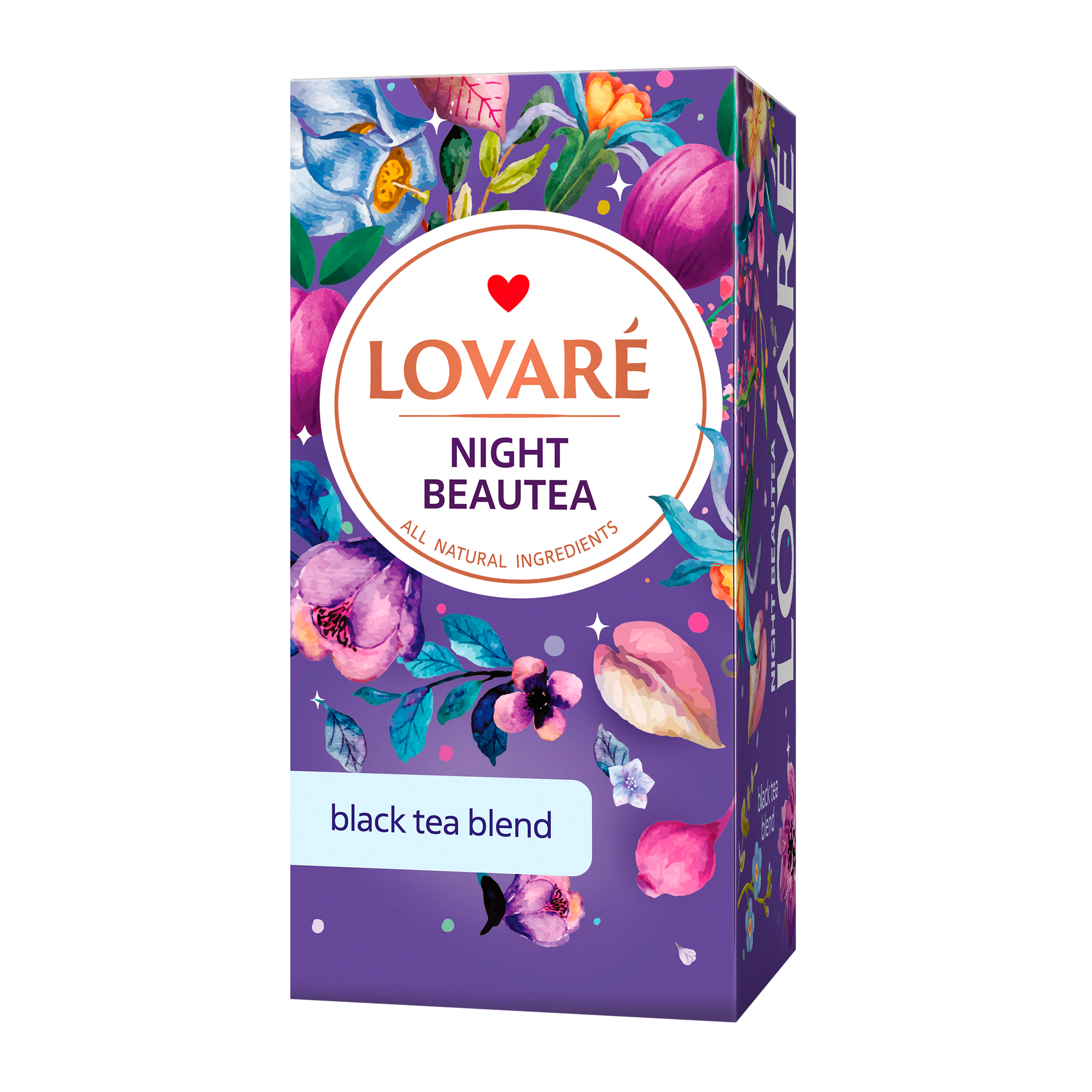 Prožijte krásný večer v opojení čaje Lovaré Night Beautea, který spojuje černý keňský čaj s třešněmi, švestkami a granátovým jablkem. Objevte harmonii výběrového keňského černého čaje s ovocnou svěžestí třešní, švestek a granátového jablka. Jemně drcené třešně a okvětní lístky chrpy polní dodávají čaji nejen lahodnou chuť, ale i půvabný vzhled. Přírodní příchuť granátového jablka, švestek a třešní dotváří bohatý ovocný charakter tohoto čaje, který potěší milovníky sladších a plnějších chutí. Ideální pro příjemné chvíle relaxace, kdykoli potřebujete povzbudit nebo si prostě vychutnat kvalitní čaj s ovocným nádechem.