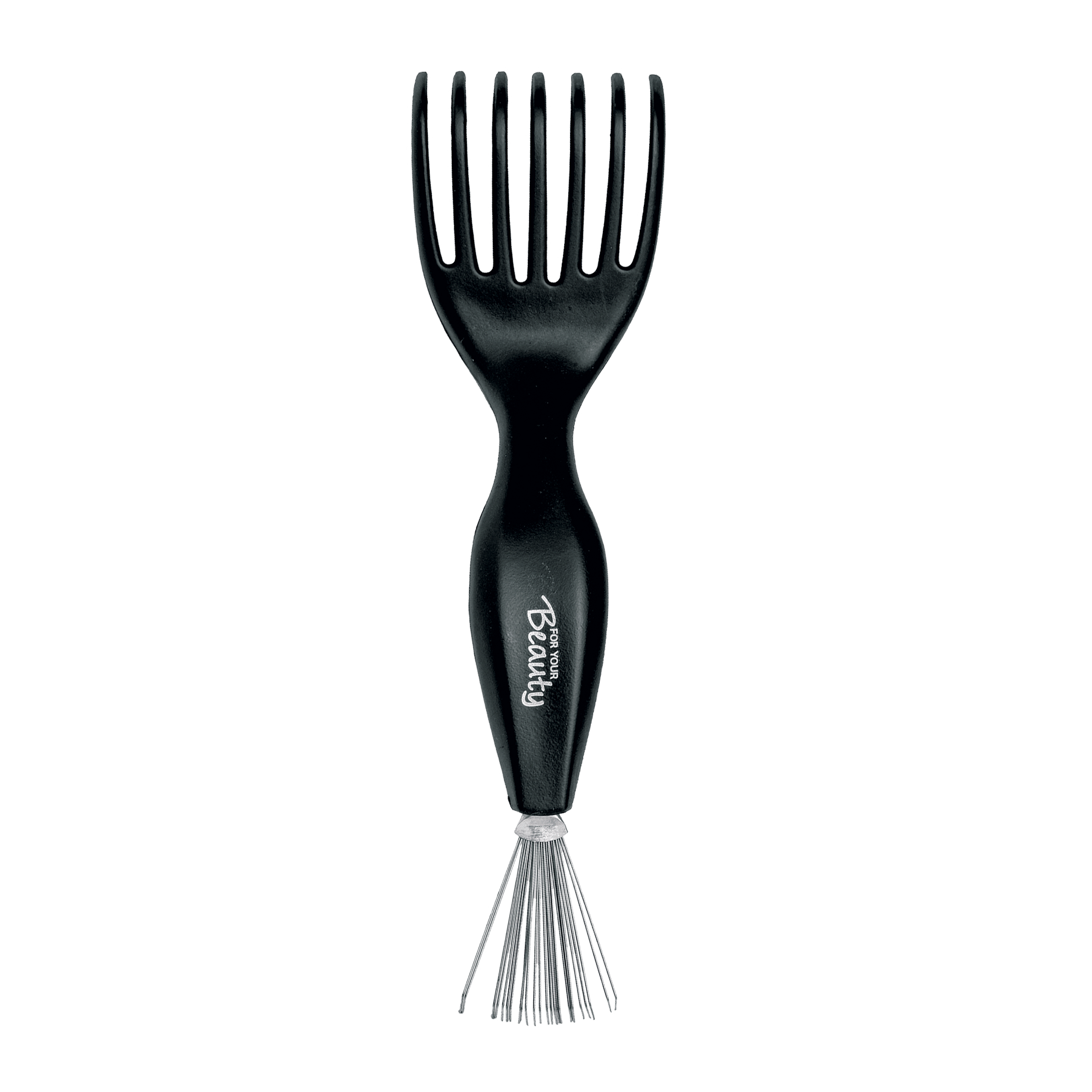 Oboustranný čistič kartáčů na vlasy je skvělým pomocníkem, kterým lze vyčistit všechny polstrované hřebeny. Díky svým šikmým kovovým zubům z nerezové oceli snadno odstraní nežádoucí vlasy a zbytky nahromaděné v kartáči. Plastové zuby kartáčového tvaru jsou zase ideální pro čištění větších hlav kartáčů. Stačí malá údržba a váš kartáč vypadá jako nový.