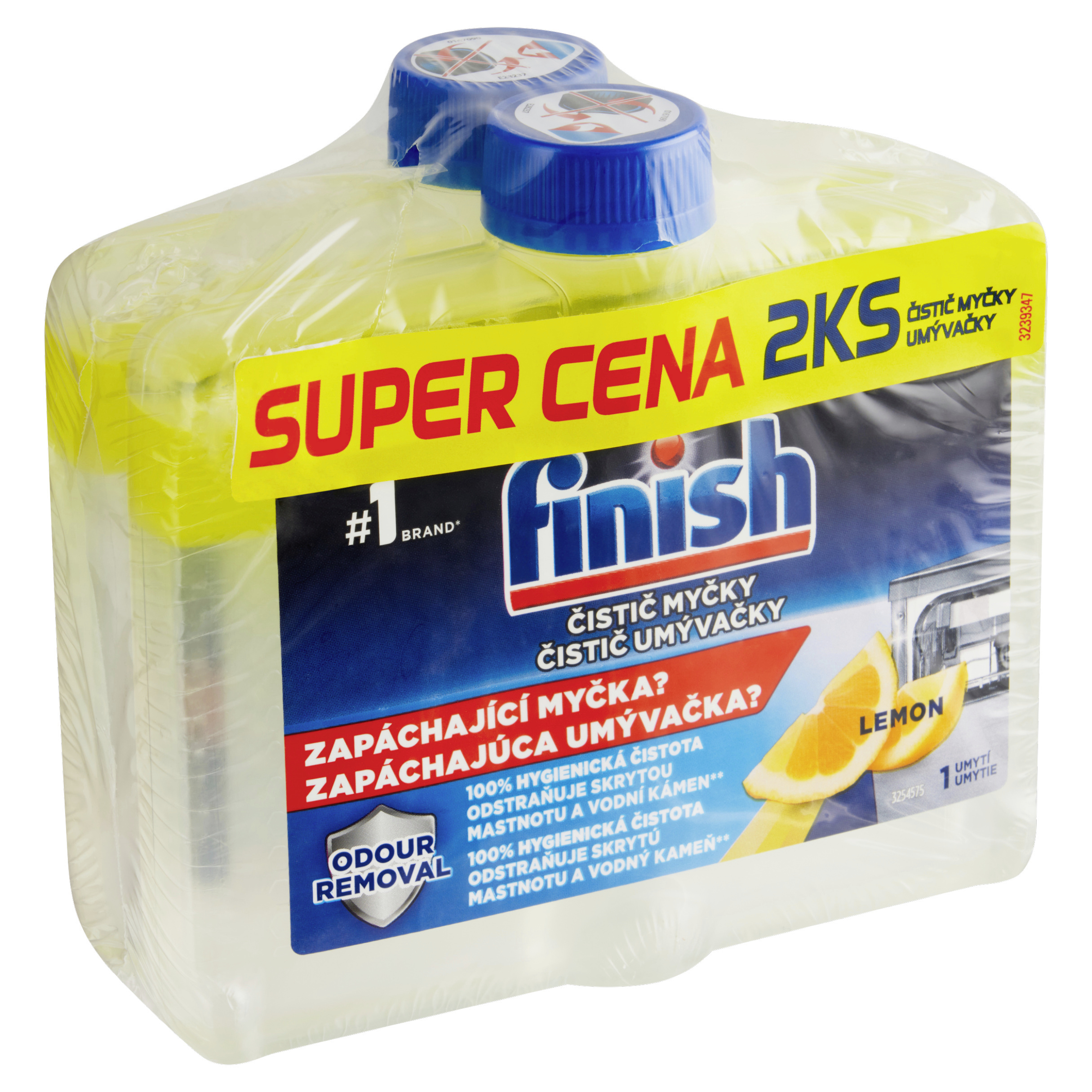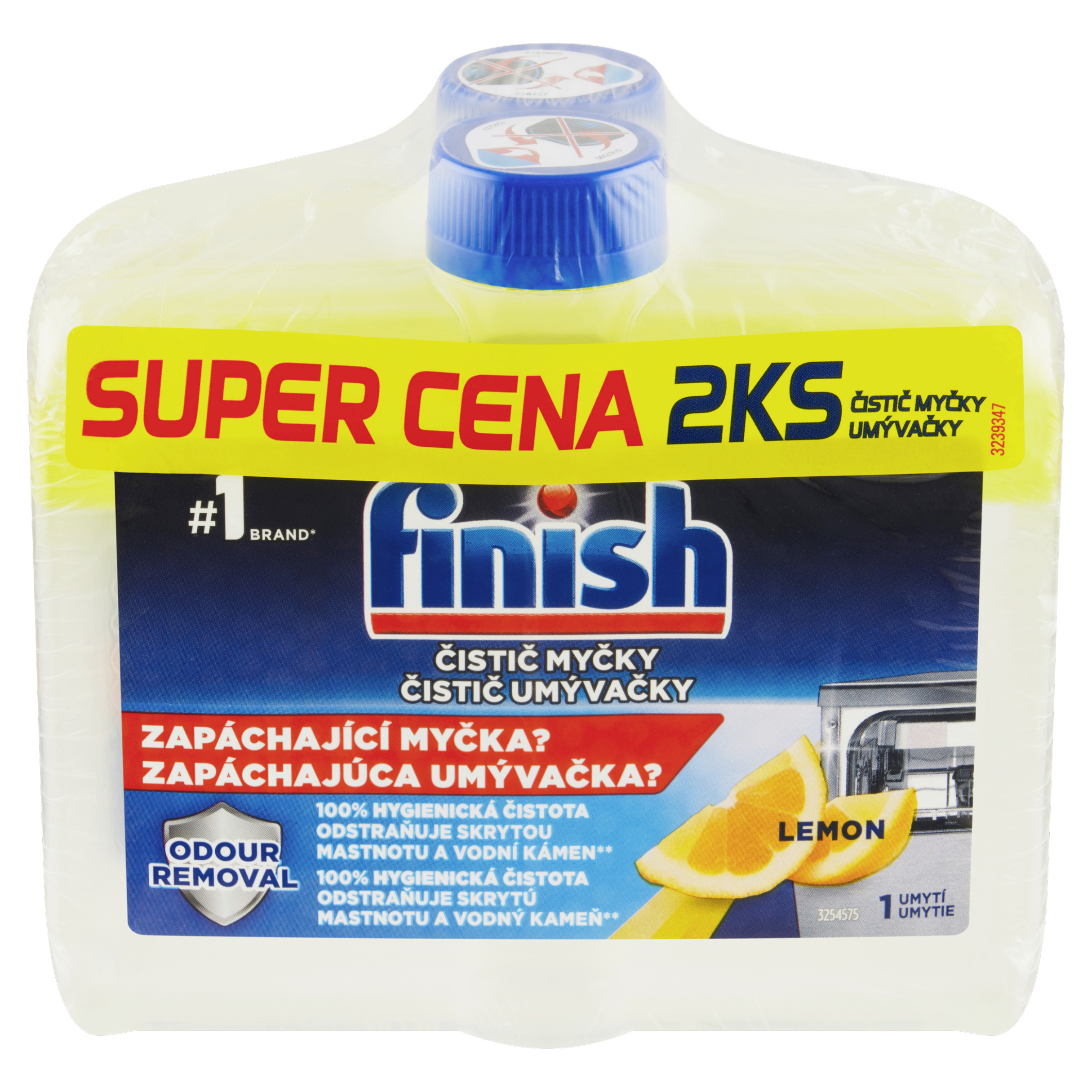 100% hygienická čistota odstraňuje skrytou mastnotu a vodní kámen** Finish Čistič Myčky: Díky silnému dvoufázovému složení nový Finish čistič myčky účinně odstraňuje skryté nečistoty a vodní kámen a činí tak vaší myčku o 100% hygienicky čistější a déle svěží.** **2x efektivnější v odstranění vodního kamene z myčky v porovnání s použitím pouze detergentu Finish. Finish je nejvíce prodávanou značkou v kategorii Automatického mytí nádobí na základě hodnoty prodejů v EU (vyjma Kypru, Finska, Lucemburska a Malty) v předchozím roce. Zdroj: Nielsen.