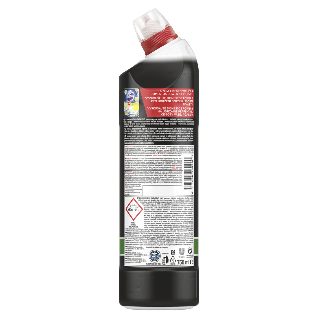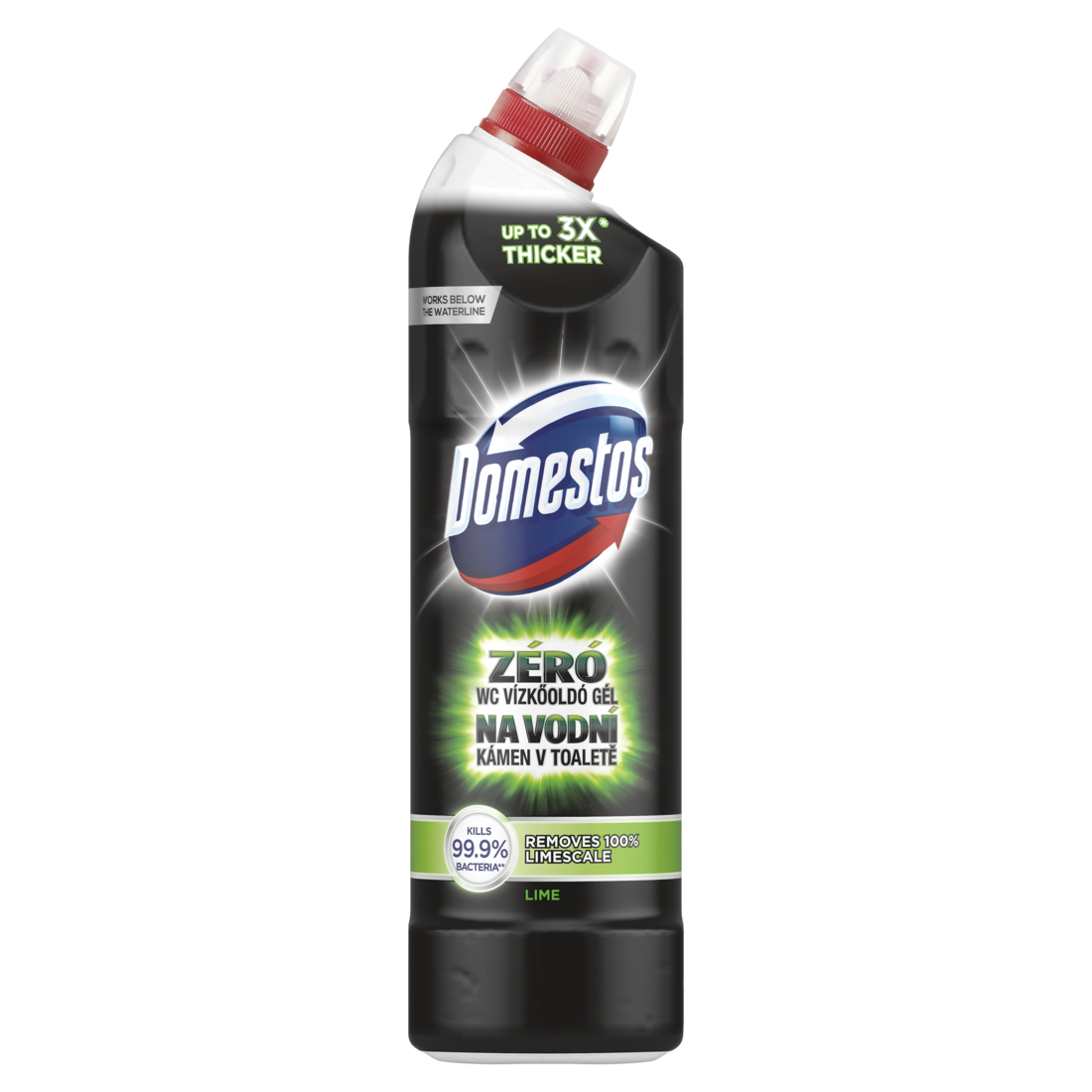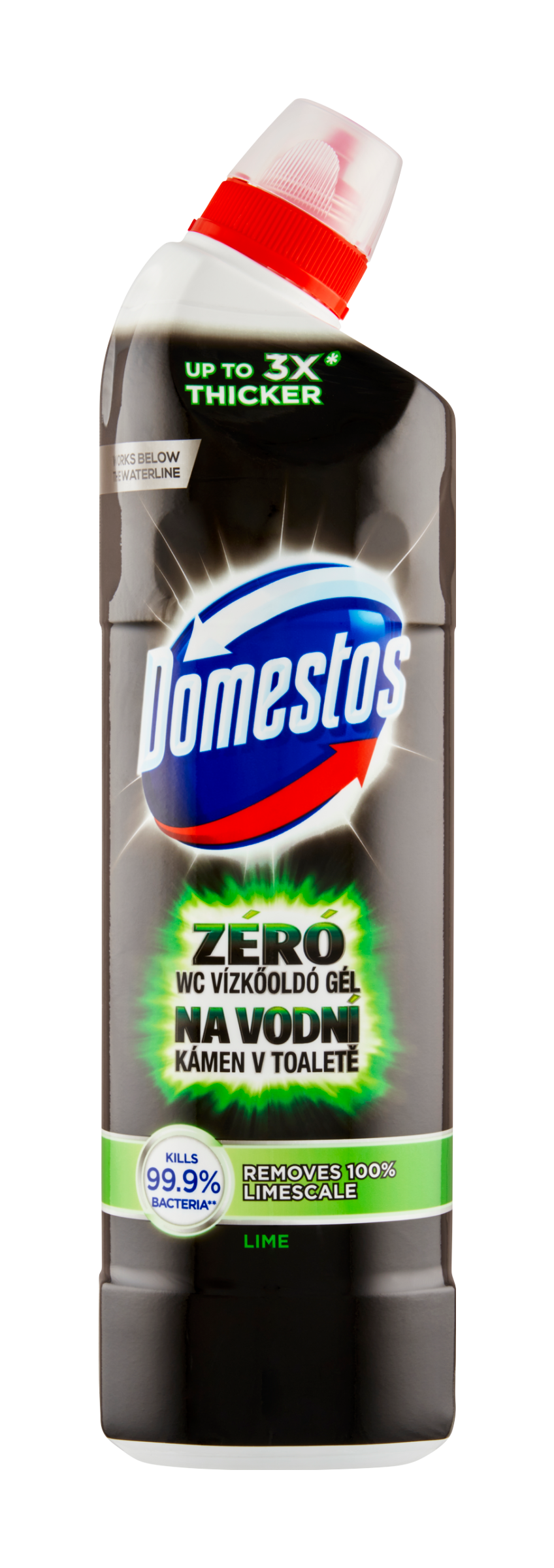 NEBEZPEČÍ Po použití přípravku a před konzumací jídla si důkladně UMYJTE RUCE A EXPONOVANOU POKOŽKU. Zabraňte styku s očima, kůží. ZAMEZTE STYKU S POTRAVINAMI, NÁDOBÍM NEBO S POVRCHY, KTERÉ JSOU VE STYKU S POTRAVINAMI. Při používání nejezte ani nepijte. Nepoužívejte společně s bělícími přípravky ani s jinými čisticími přípravky, mohou se uvolňovat nebezpečné plyny (chlor) nebo teplo. Je-li nutná lékařská pomoc, mějte po ruce obal nebo štítek výrobku. Zamezte styku s jinými povrchy než záchodovou mísu. DOMESTOS na vodní kámen v toaletě Lime. Způsobuje těžké poleptání kůže a poškození očí. Škodlivý pro vodní organismy, s dlouhodobými účinky. Může být korozivní pro kovy. Uchovávejte mimo dosah dětí. Uchovávejte pouze v původním balení. Zabraňte uvolnění do životního prostředí. PŘI POŽITÍ: Vypláchněte ústa. NEVYVOLÁVEJTE zvracení. PŘI STYKU S KŮŽÍ (nebo s vlasy): Veškeré kontaminované části oděvu okamžitě svlékněte. Opláchněte kůži vodou [nebo osprchujte]. PŘI ZASAŽENÍ OČÍ: Několik minut opatrně vyplachujte vodou. Vyjměte kontaktní čočky, jsou-li nasazeny a pokud je lze vyjmout snadno. Pokračujte ve vyplachování. Okamžitě volejte TOXIKOLOGICKÉ INFORMAČNÍ STŘEDISKO/lékaře. Skladujte uzamčené. OBSAHUJE: kyselina chlorovodíková, sulfamidová kyselina, (Z)-Oktadec-9-enylamin, ethoxylovaný (1