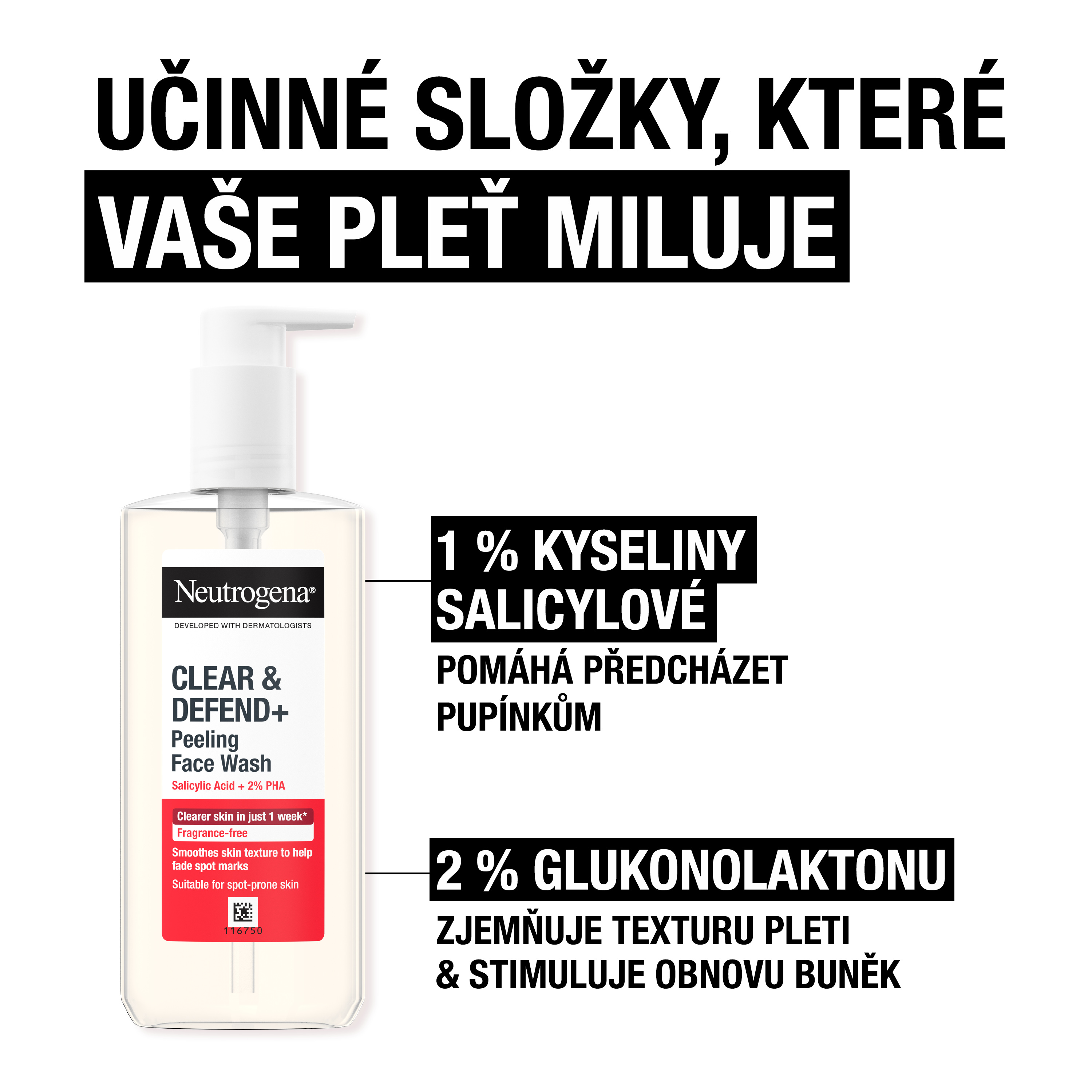 Pro hrubou pleť se skvrnami po pupíncích. Pro čistší pleť už za 1 týden*.