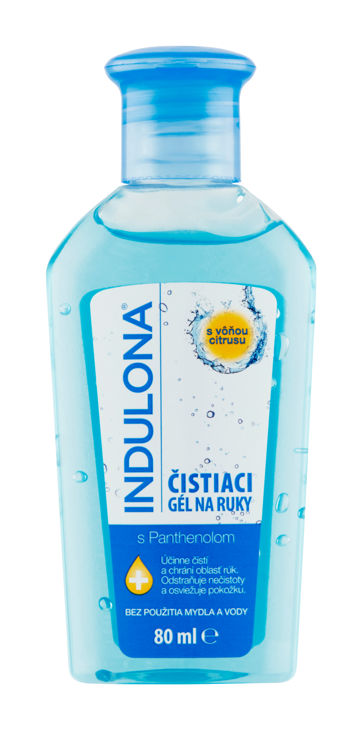 Indulona je čisticí gel na ruce s panthenolem a vysokým obsahem alkoholu (65 %), který účinně čistí ruce bez použití mýdla a vody.