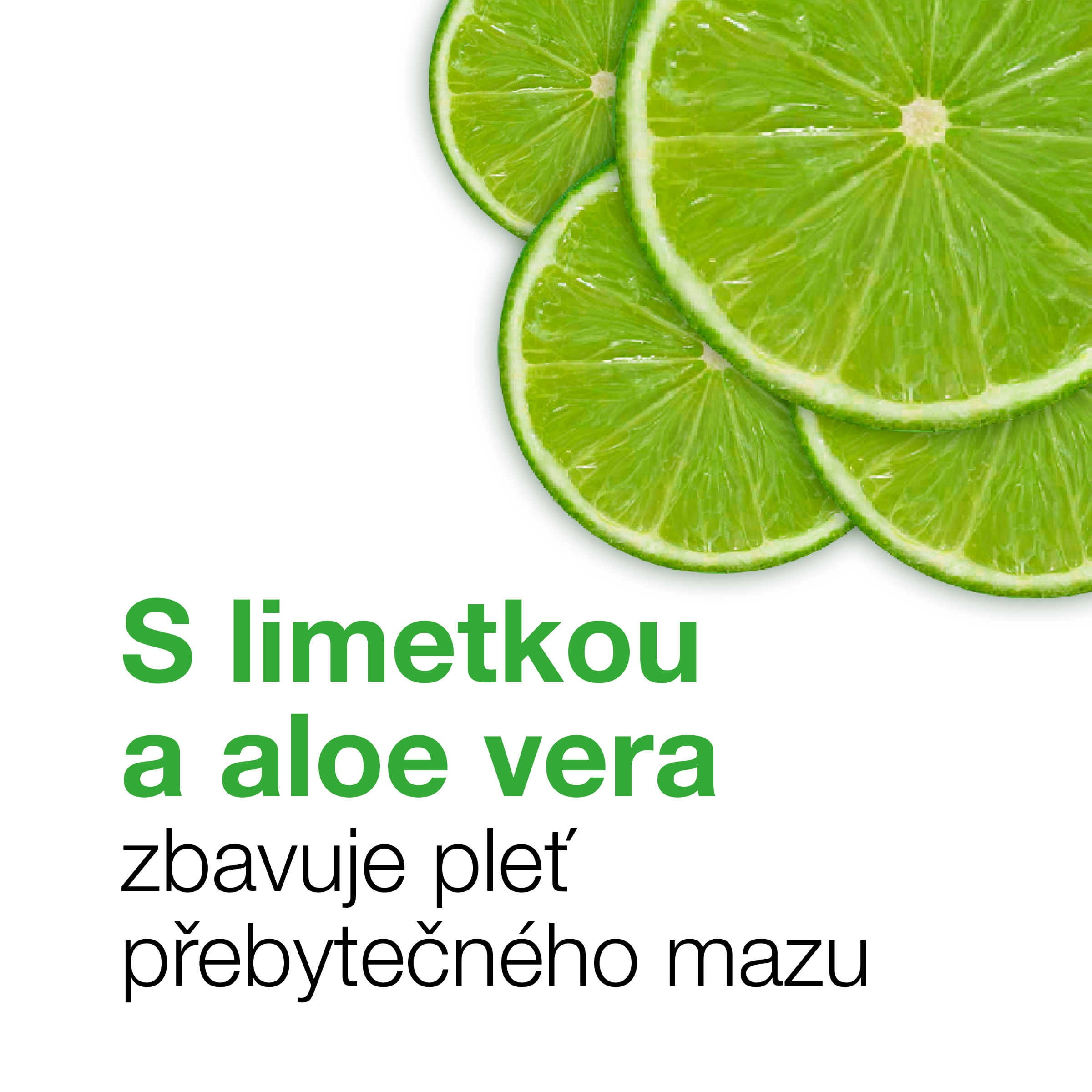 Tento osvěžující čisticí gel s limetkou a aloe vera stahuje póry a zmatňuje pleť. Gel bez obsahu oleje pleť jemně čistí, zbavuje ji přebytečného mazu a zanechává ji dlouhodobě matnou. Pro mastnou pleť.