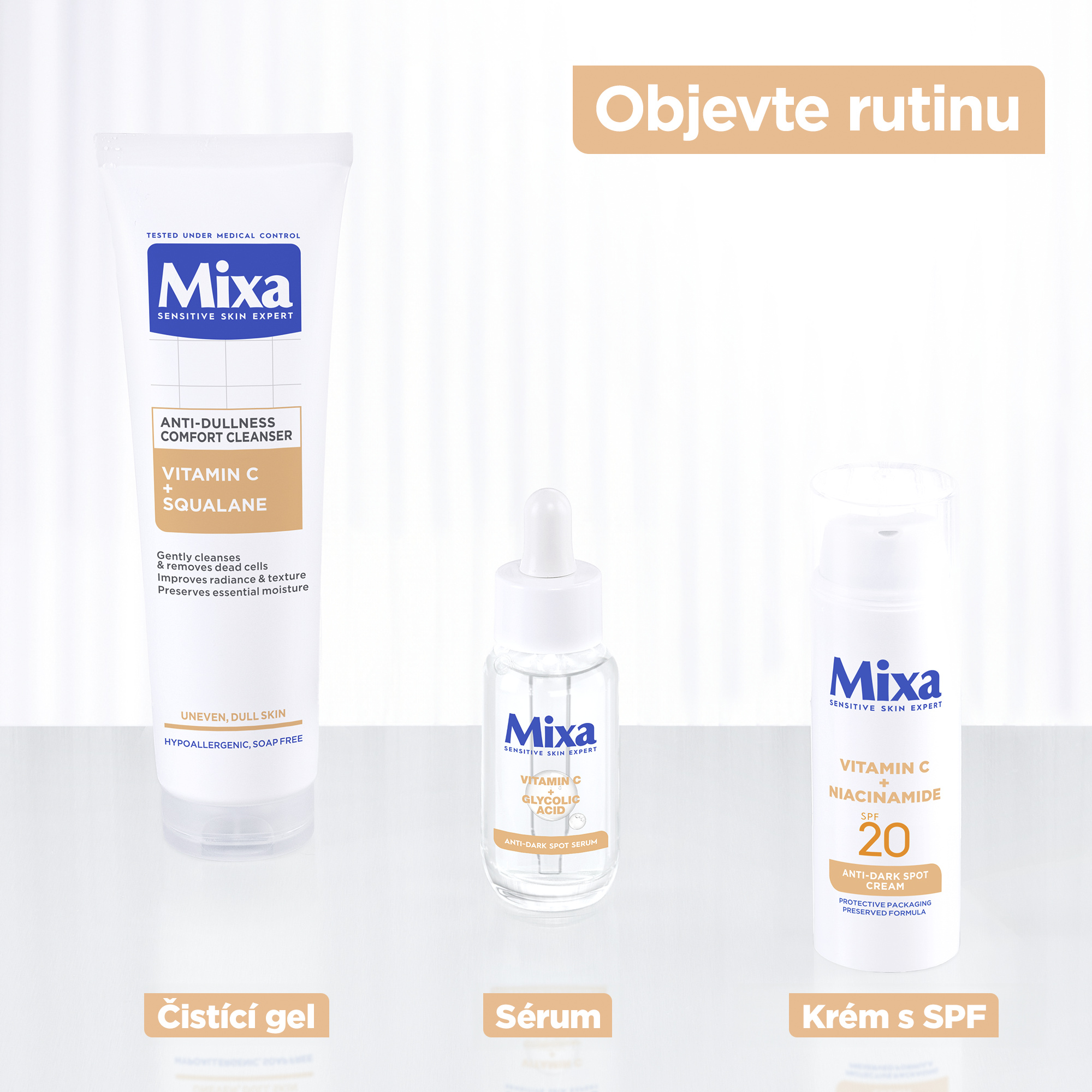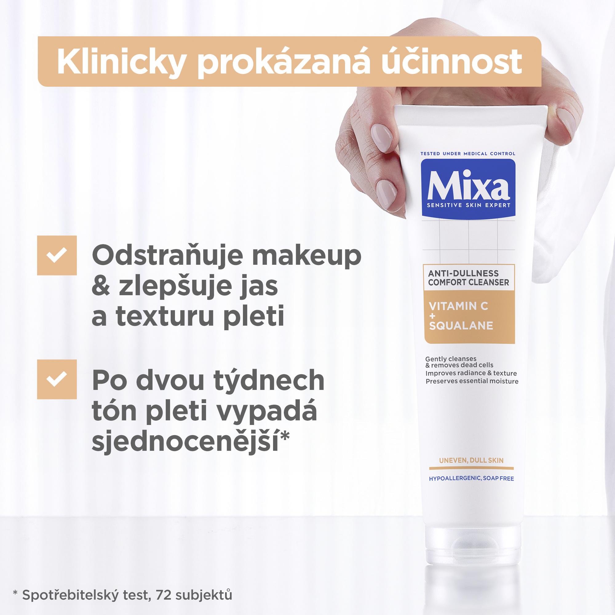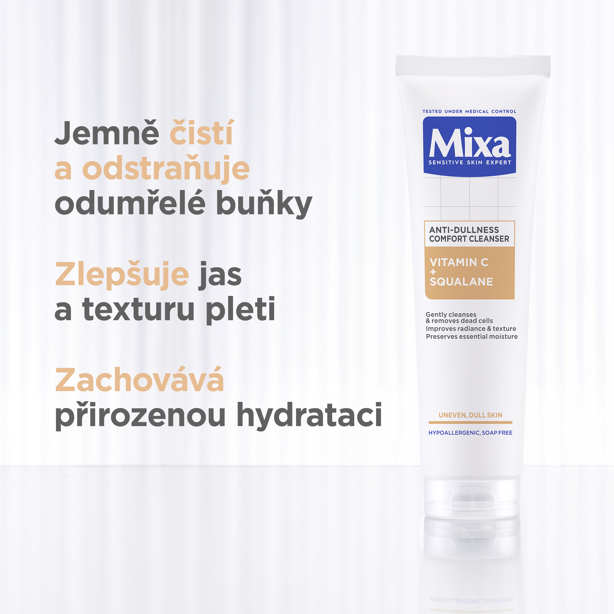 Mixa čisticí gel pro mdlou pleť s obsahem vitamínu C a skvalenu, jemně čistí a odstraňuje odumřelé buňky z vaší pleti. Vitamín C pleť rozjasňuje a chrání před vnějšími vlivy, skvalen zajišťuje hydrataci a zanechává pleť hebkou a vláčnou.