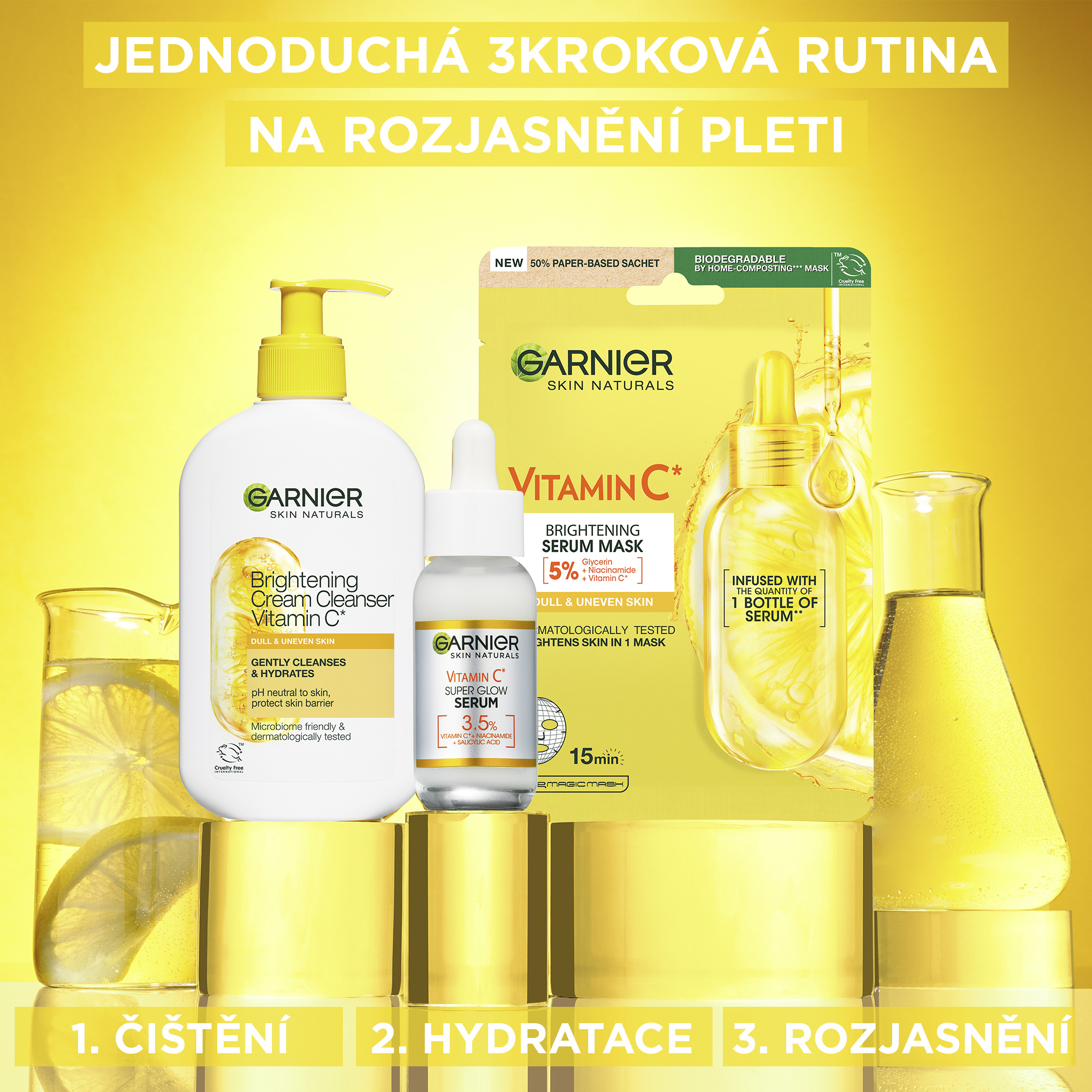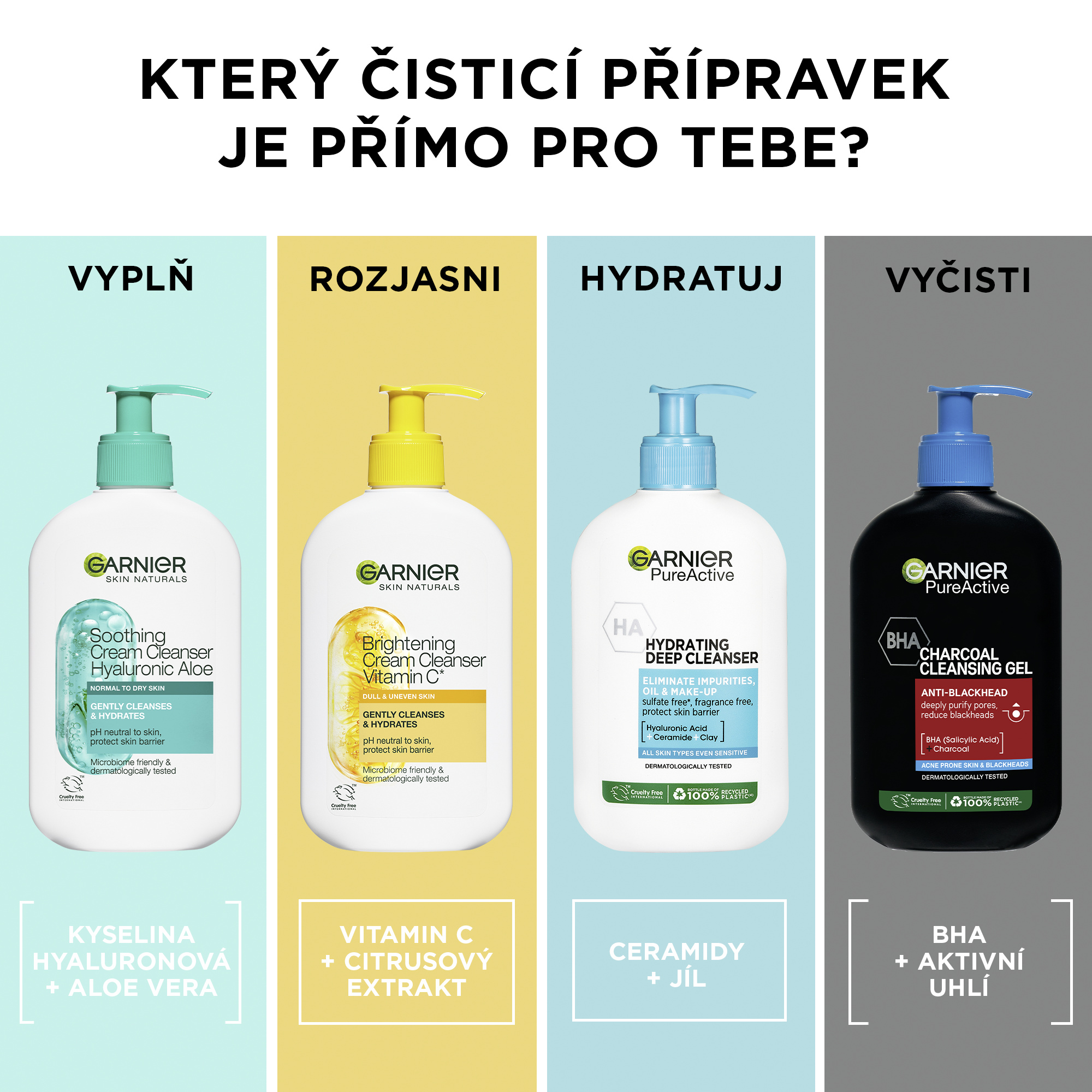 Rozjasňující čisticí krém obohacený o glycerin a vitamin C* hloubkově čistí, hydratuje a rozjasňuje pleť, aby byla rovnoměrnější a zářivější. *Vitamin Cg = derivát vitaminu C.