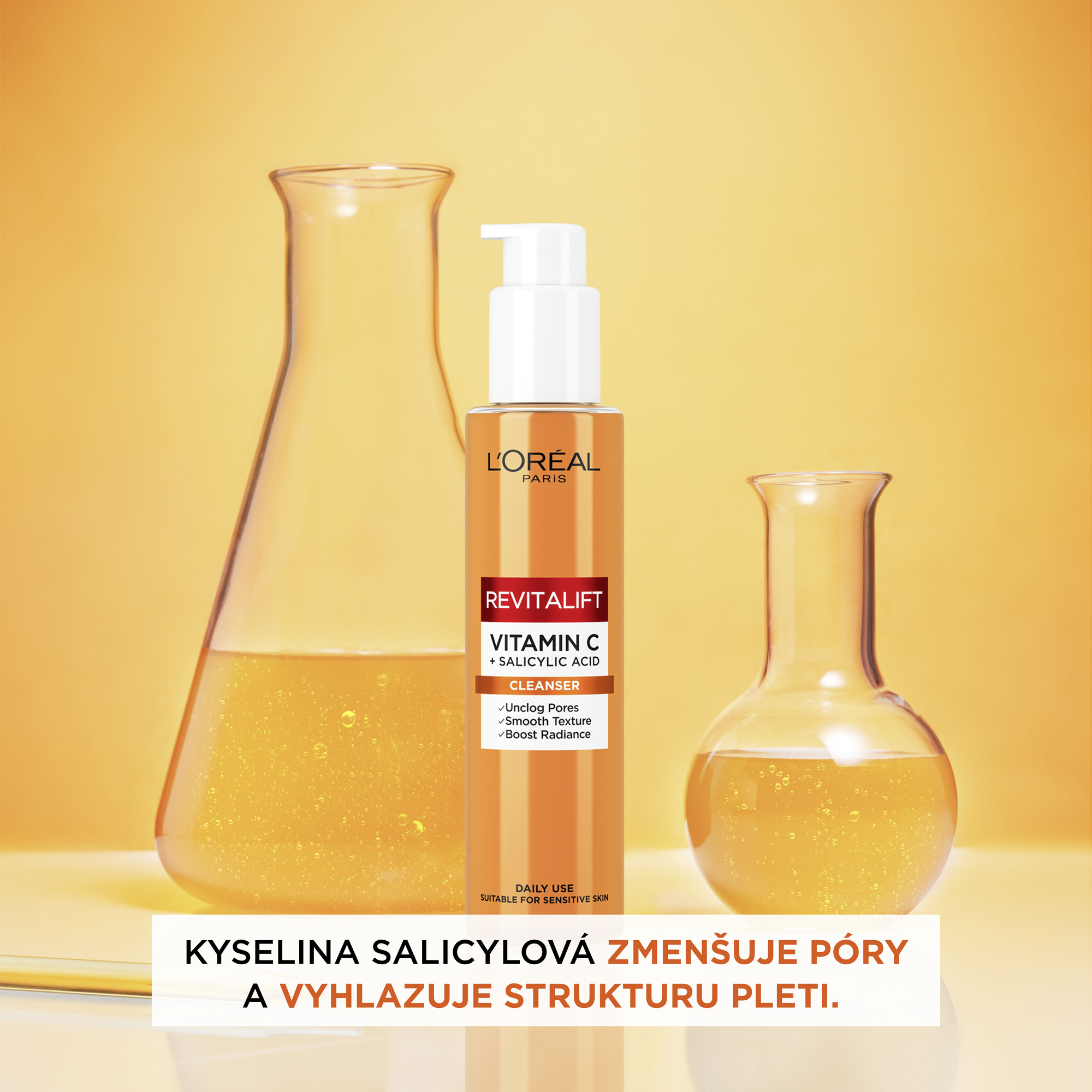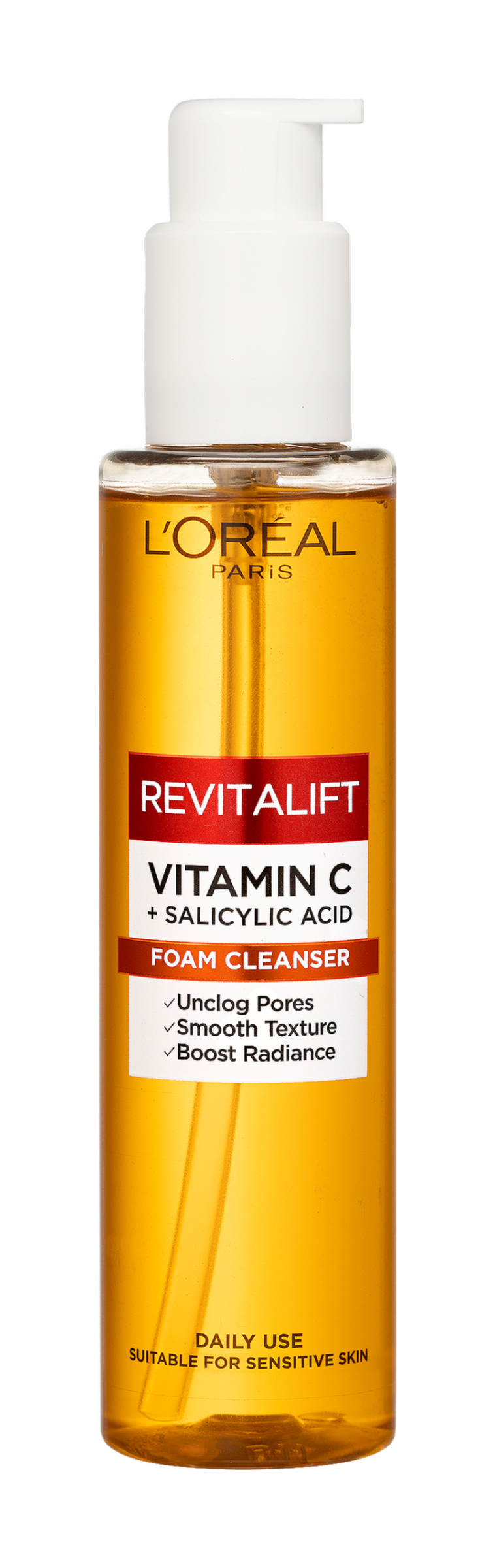 Denní čisticí pěna obohacená o vitamin C*, antioxidant známý svými rozjasňujícími vlastnostmi, a kyselinu salicylovou, účinnou látku pro exfoliaci pleti, redukci pórů a vyhlazení struktury pleti.