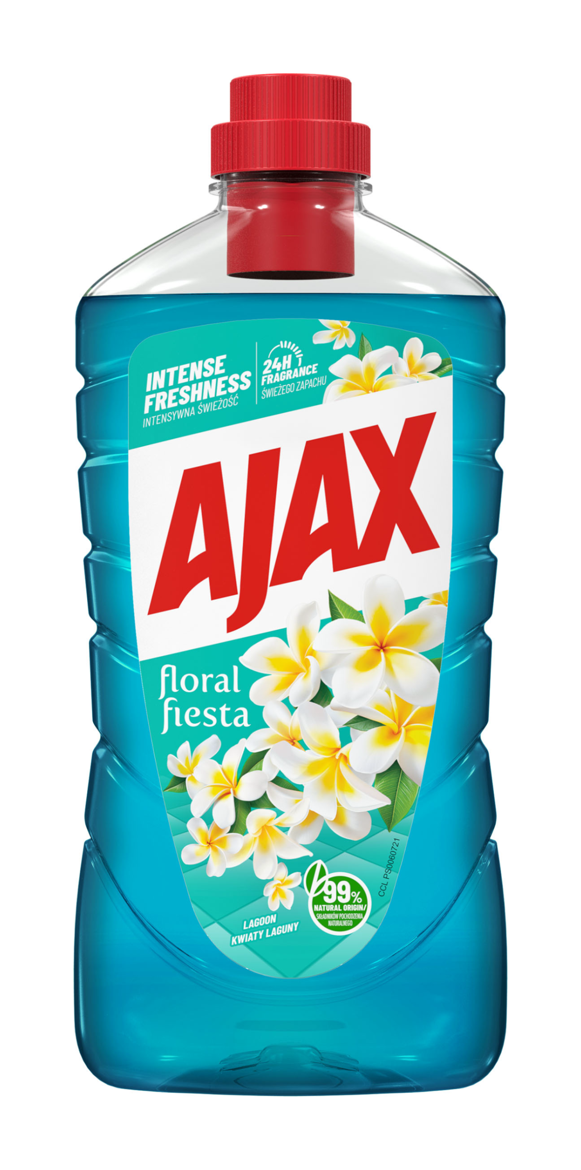 Víceúčelový čistič Ajax Fete des Fleurs Lagoon odstraňuje zápach a zanechává 24 hodin přirozené svěžesti. Čistič povrchů také přináší svou 100% čisticí sílu.