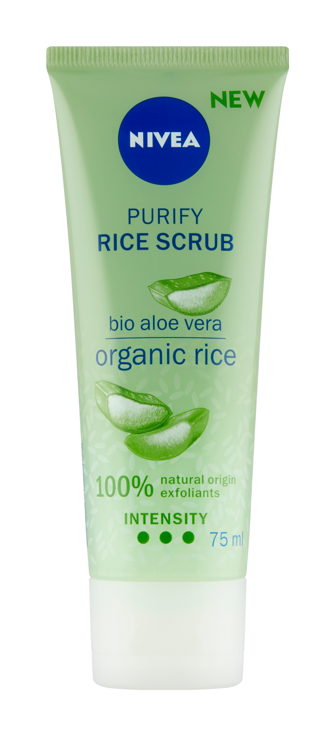 Nivea® Čisticí rýžový peeling pro smíšenou pleť s organicky pěstovanou rýží a bio aloe vera podporuje přirozenou obnovu pleti. Odstraní odumřelé kožní buňky, důkladně vyčistí póry a zmatní pleť. Bez plastových mikročástic.