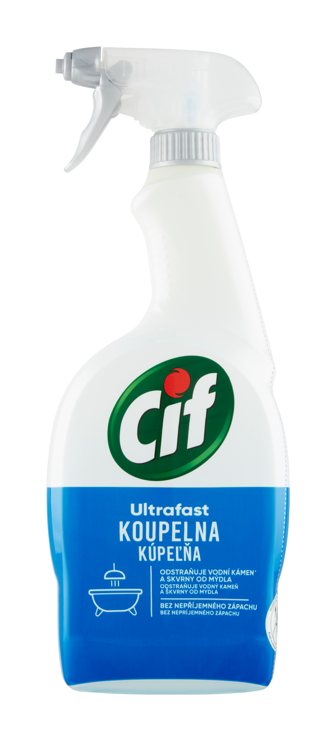 Cif Ultrafast Koupelna čisticí sprej je dokonalý pomocník při úklidu vaši koupelny. Ať už potřebujete vyčistit umývadlo, vanu, sprchový kout nebo dlaždice, Cif Ultrafast koupelna díky speciálnímu složení snadno a rychle odstraňuje vodní kámen a běžné nečistoty v koupelně a přitom zanechává povrchy zářivé a bez nepříjemného zápachu. K odstranění odolné špíny nechte přípravek působit jednu minutu, poté setřete. Láhev je vyrobena z 50% z recyklovaných plastů.