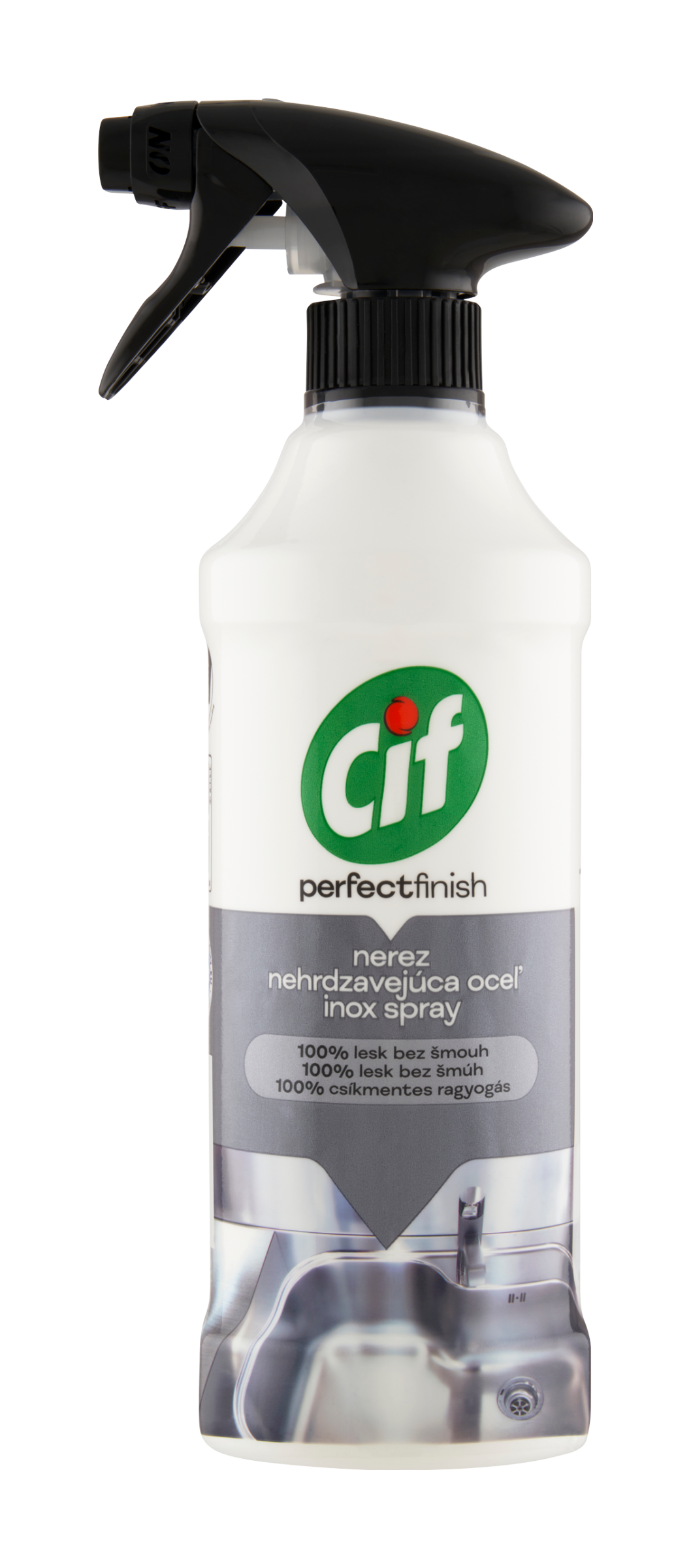 Speciálně navržený čistič Cif Perfect Finish Nerez je tím nejlepším pomocníkem při úklidu pro odstranění nečistot jako jsou otisky prstů, zaschlé kapky vody a mastnota. Pro 100% lesk beze šmouh na nerezovém povrchu. Je jemný k povrchům a zanechává dokonalý lesk. Nechte své nerezové povrchy dokonale zazářit a vraťte jim trvalý lesk díky Cif Perfect Finish Nerez čisticímu spreji.