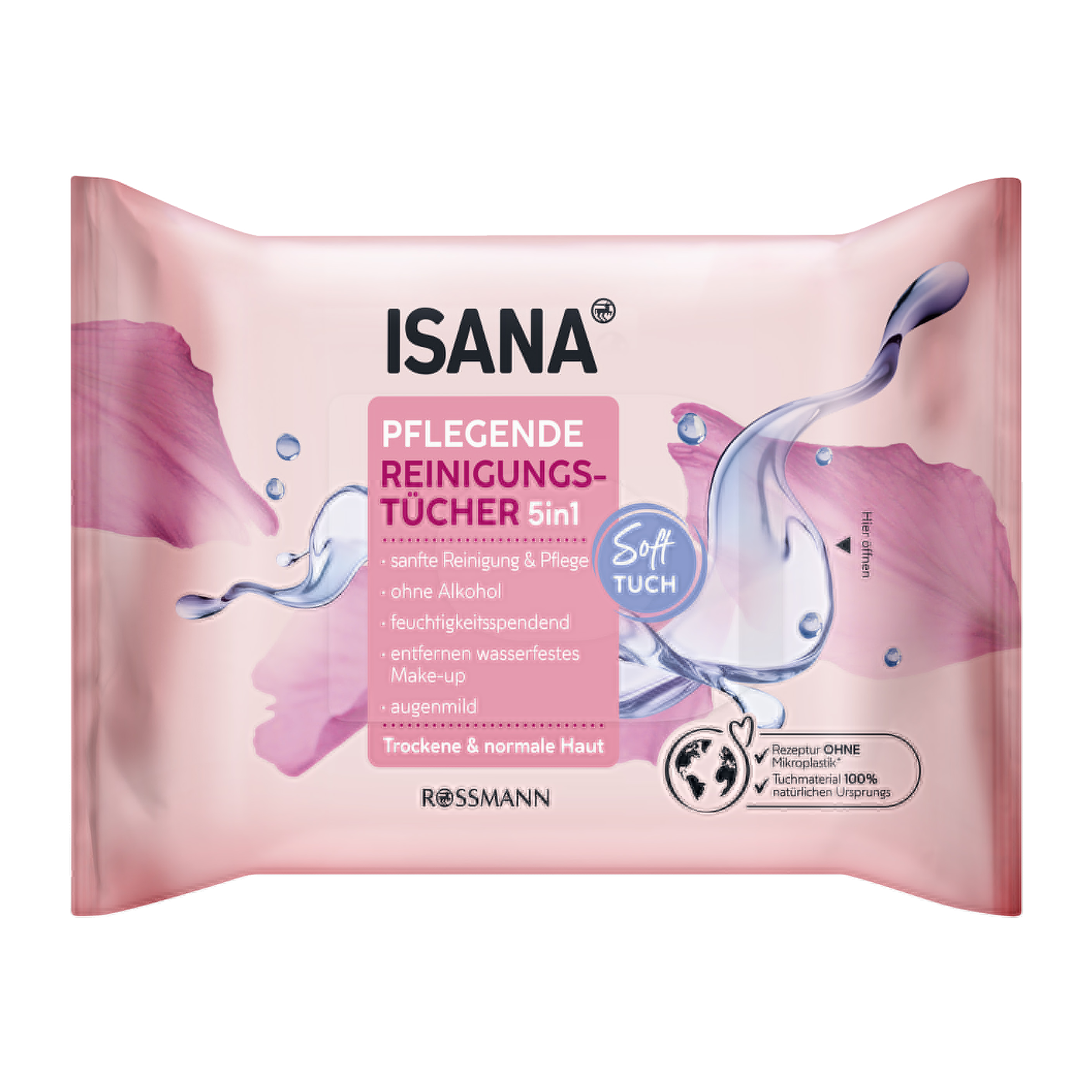 Vyživující čisticí ubrousky ISANA 5v1 čistí pokožku obzvláště jemně a důkladně. Pokožka je zásobována tolik potřebnou vlhkostí a ve výsledku vypadá zářivěji.