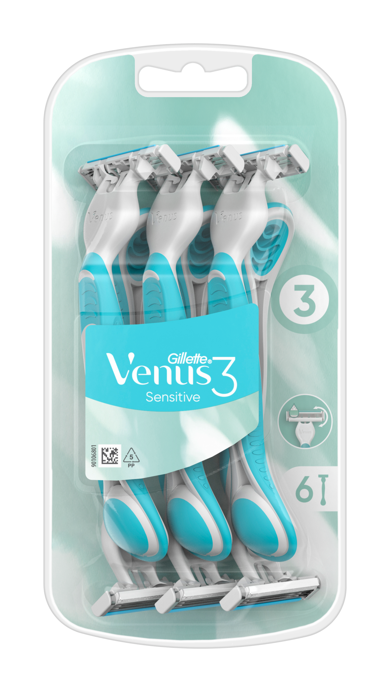Dámská pohotová holítka Gillette Venus 3 Sensitive zajišťují hladké oholení za skvělou cenu. Mají výkyvnou holicí hlavici se 3 břity pro holení obtížně přístupných míst a zvlhčující pásek SkinElixir usnadňující skluz, který pomáhá chránit citlivou pokožku před podrážděním při holení. Užijte si hladké holení s větším komfortem (v porovnání s holítky Venus Simply 2).