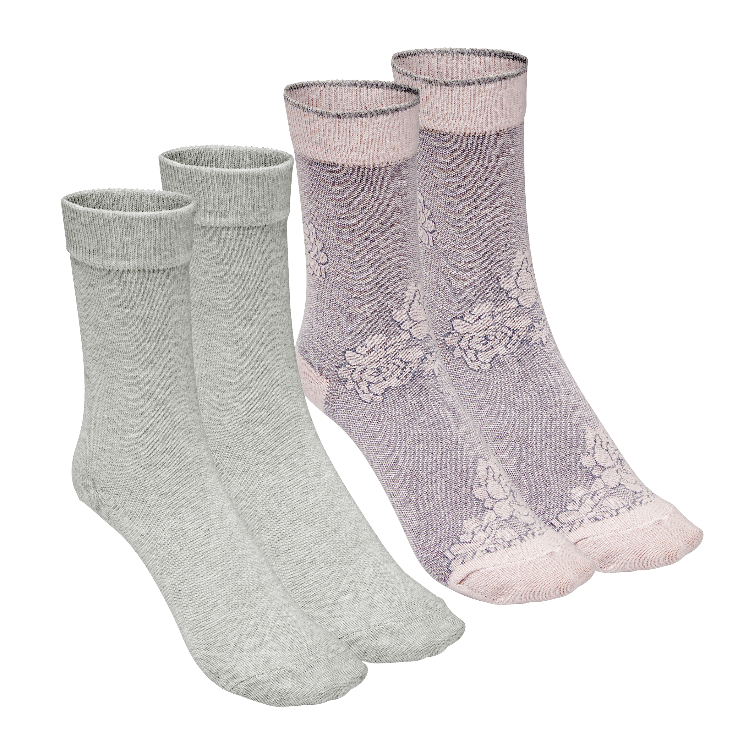 Dámské ponožky pro volný čas, šedé/květiny 2PACK vel. 35/38
