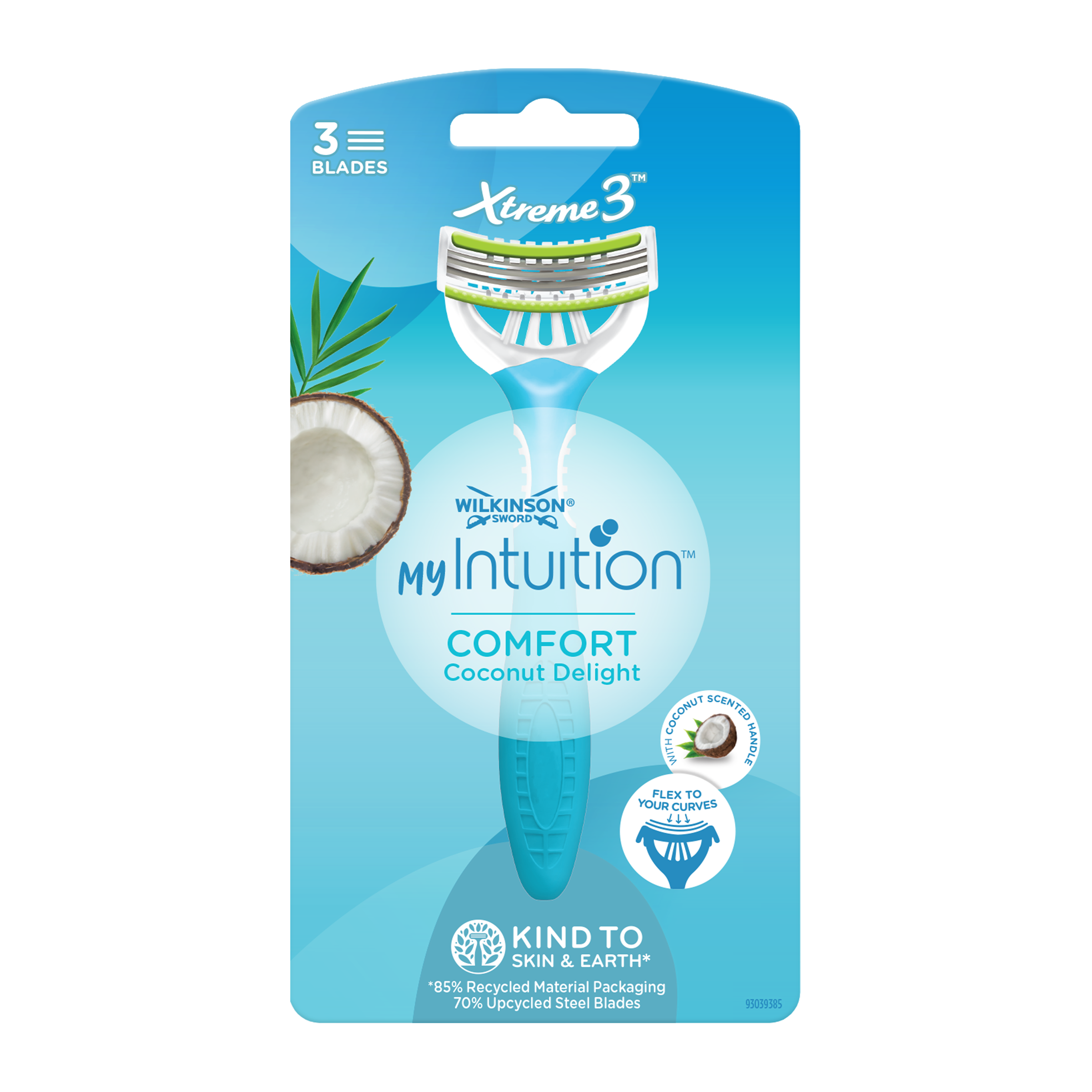 Jednorázový holicí strojek myIntuition Comfort Coconut Delight Xtreme 3 přesvědčí ženským designem a speciálním úchopem. Tento holicí strojek může být více než jiné jednorázové holicí strojky a zajišťuje spoustu pohodlí a důkladné a bezpečné oholení. Rukojeť holicího strojku vyrobená z 30 % recyklovaného plastu, což snižuje dopad na životní prostředí.