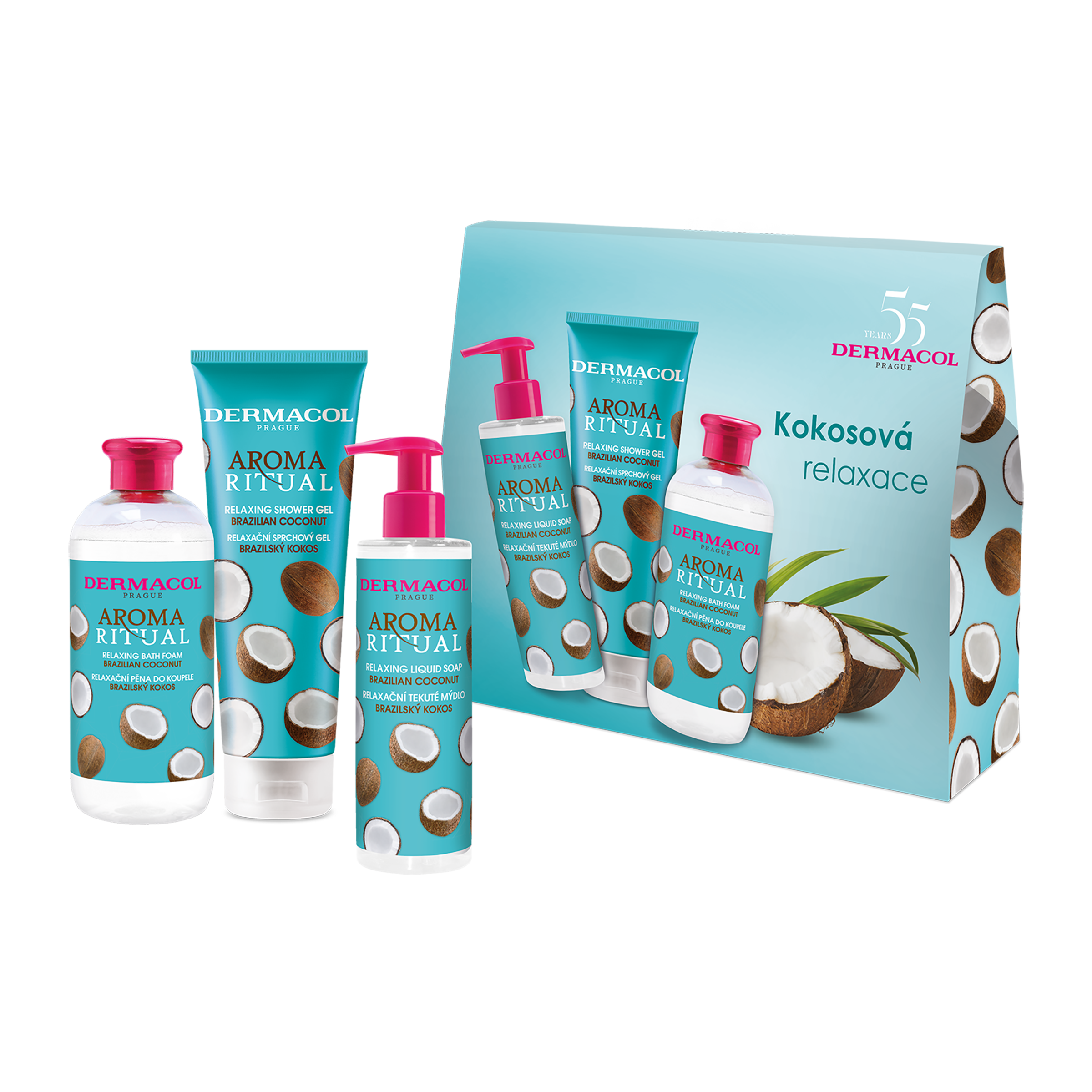 Brazilský kokos si jako vůně ve sprchovém gelu získal mnoho lidí. Balíček obsahující sprchové mýdlo a mýdlo na ruce se hodí opravdu pro každého. Balení obsahuje: Aroma Ritual tekuté mýdlo brazilský kokos 250ml, Aroma Ritual - relaxační sprchový gel brazilský kokos 250ml, Aroma Ritual – pěna do koupele kokos 500ml.