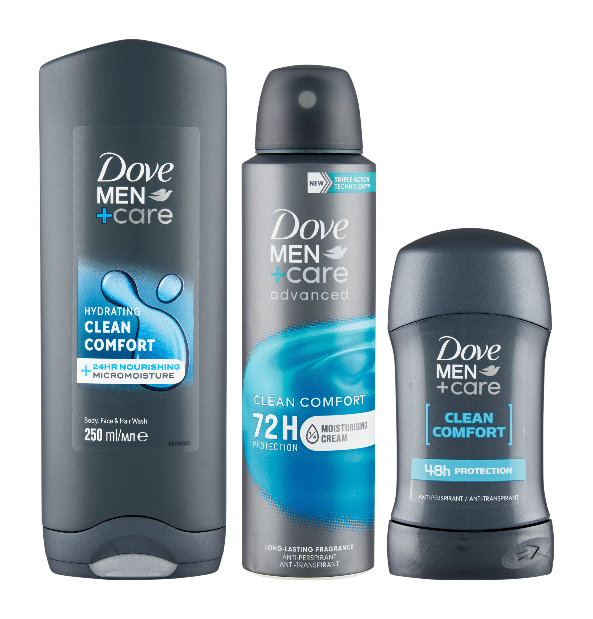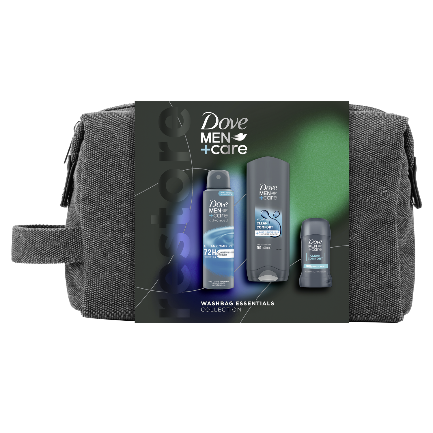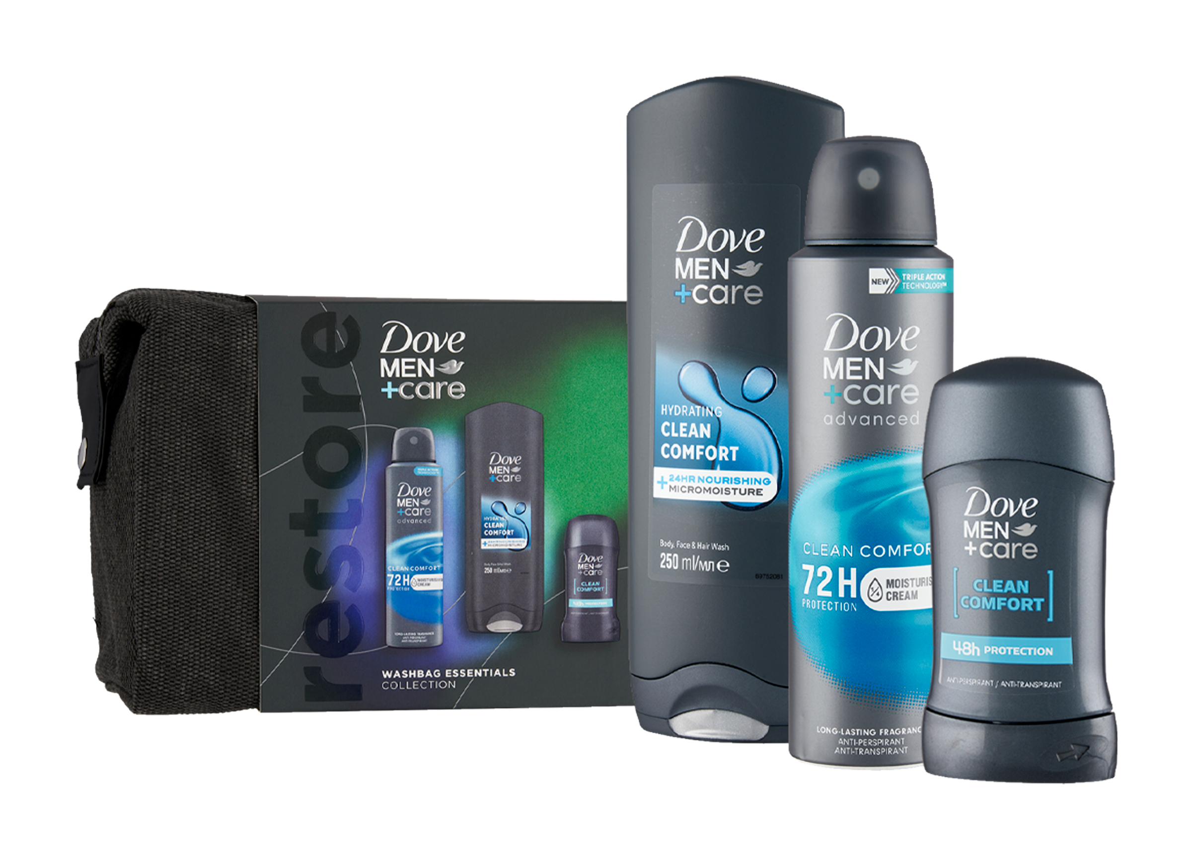 Obdarujte svého blízkého kosmetickou taškou Dove Men+Care Clean Comfort. Jedinečné složení sprchového gelu Dove Men+Care Clean Comfort s technologií MicroMoisture, která se aktivuje napěněním gelu, pomáhá uzamykat v pokožce její přirozenou vlhkost a zanechává ji svěží a hydratovanou. Vysoce účinné složení se snadno oplachuje a přináší osvěžující čistotu a celkové pohodlí pokožce. Je však také natolik jemné, že můžete gel použít nejen pro mytí pokožky těla, ale také obličeje. Antiperspirant Dove Men+Care Advanced Clean Comfort pomáhá bojovat s potem a tělesným pachem po dobu až 72 hodin. Technologie s ¼ hydratačního krému pomáhá pokožku chránit proti podráždění. Výsledkem je hladká a vyživená pokožka vašeho podpaží. Prodlužte si pocit svěžesti díky pánskému deodorantu s čistou vůní, jako je například tuhý antiperspirant Dove Men+Care Clean Comfort. Tento tuhý antiperspirant chrání proti pocení a tělesnému pachu po dobu 48 hodin. Zanechává na pokožce jemnou vůni, díky které budete skvěle vonět po celý den. Tohle trio je skutečný základ pro muže, který dodá pokožce potřebnou vůni a hydrataci.