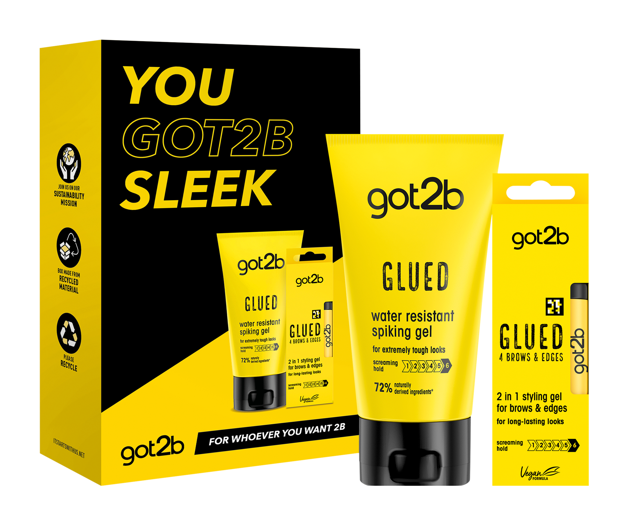Dárková sada obsahuje got2b Glued Water Resistant Spiking Gel a got2b Glued Brows & Edges.
