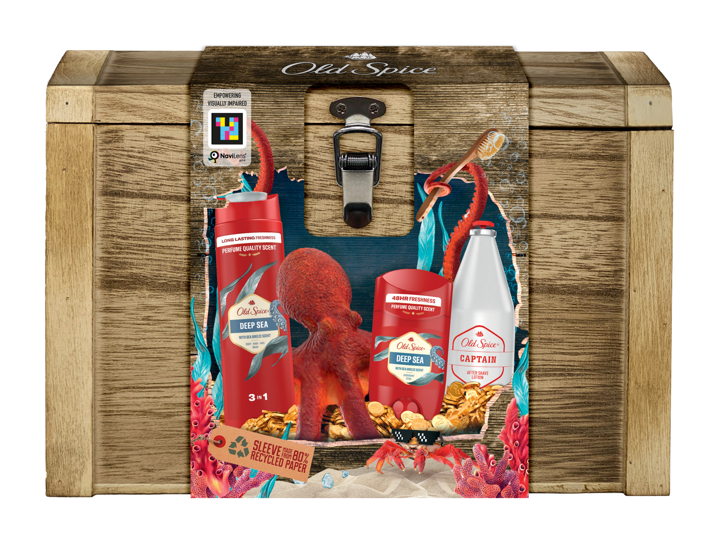 Hledáte pro něj dokonalý dárek? Dárkové sady Old Spice jsou to nejlepší, čím ohromíte moderního muže. Ptáte se proč? Protože s vůněmi Old Spice parfémové kvality jednoduše nemůžete udělat chybu. Dárková sada Treasure Chest od Old Spice obsahuje tuhý deodorant, deodorant ve spreji a pánský sprchový gel Deep Sea plus vodu po holení Captain. To vše v dřevěné truhlici, kterou lze použít opakovaně k uložení všeho možného nebo k ukrytí jeho pirátského pokladu. Toaletní potřeby v truhlici ve 2 pánských vůních: Captain, vůni divokých mořských vln, santalového dřeva a pikantního bergamotu; a Deep Sea, svěží vůni mořského vánku, kvetoucích květin a šťavnatých citrusů. S touto kombinací prostě nelze nic pokazit! Hledáte pro něj dokonalý dárek? Dárkové sady Old Spice jsou to nejlepší, čím ohromíte moderního muže. Ptáte se proč? Protože s vůněmi Old Spice parfémové kvality jednoduše nemůžete udělat chybu.