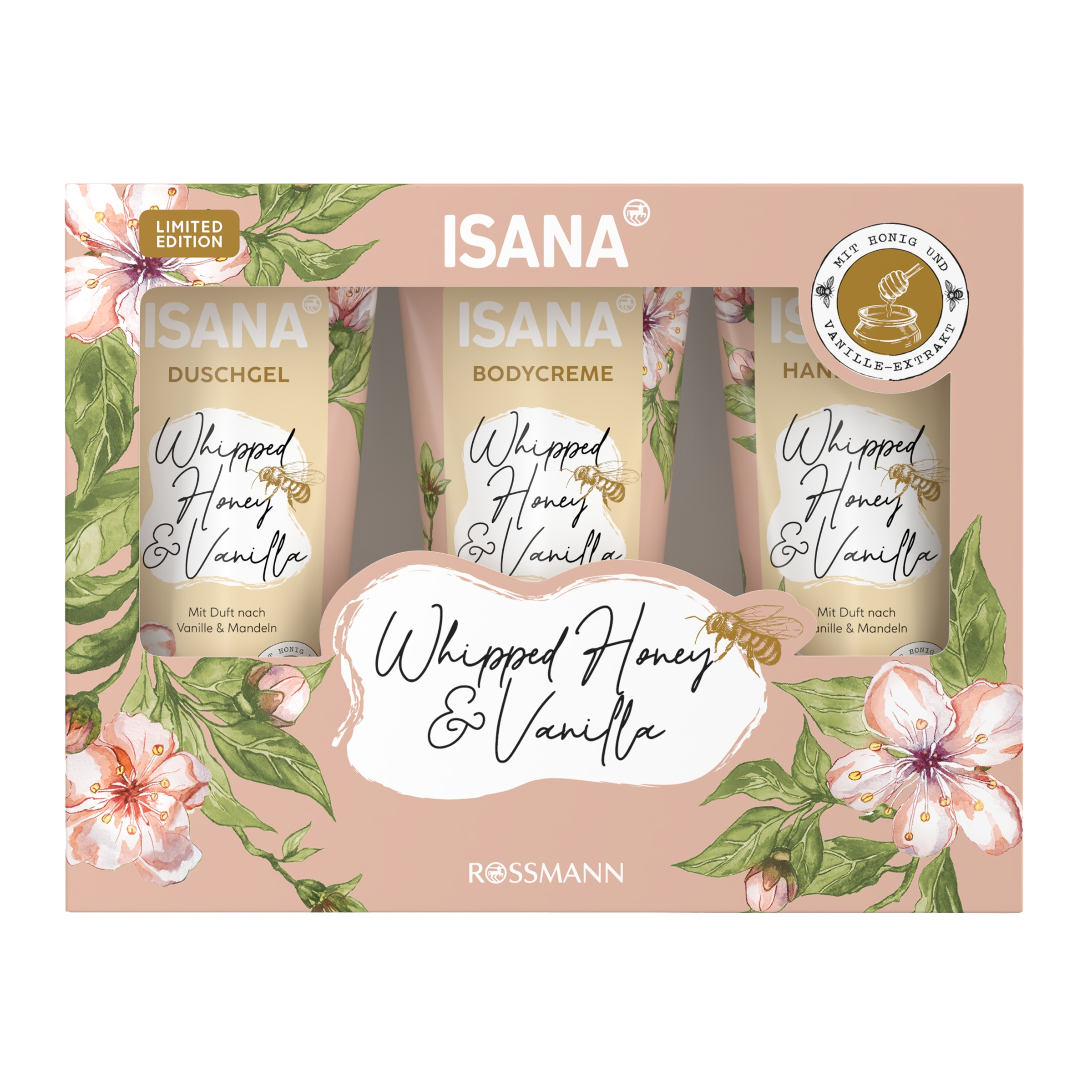 Dopřej si hýčkání s dárkovou sadou ISANA Whipped Honey & Vanilla. Ponoř se do světa jemné péče a sladké vůně teplé vanilky a medu. Tato sada přináší uklidňující, vyživující rituál, který rozmazlí pokožku i smysly – ideální pro chladné zimní dny plné pohody a klidu.
