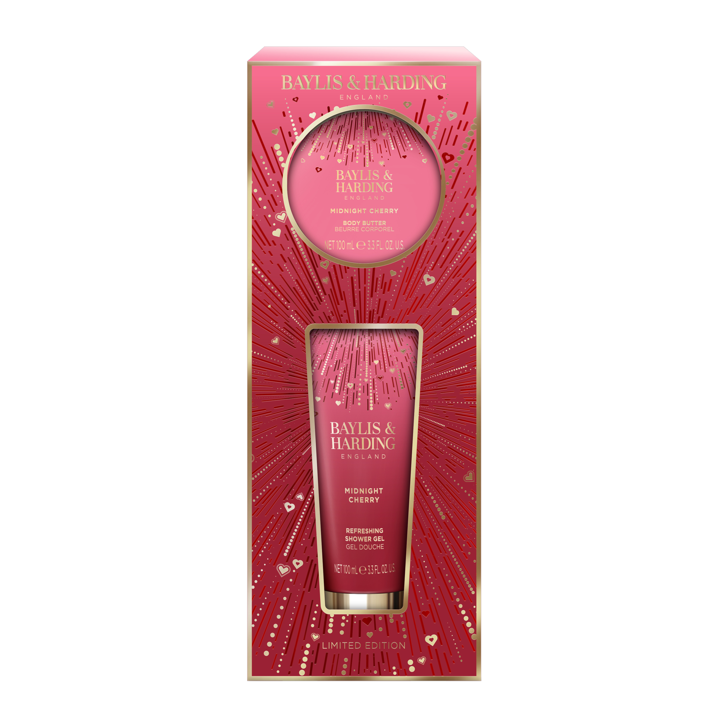 Dárková sada Midnight Cherry přináší dokonalé spojení osvěžujícího sprchového gelu a vyživujícího tělového másla s podmanivou vůní šťavnatých třešní, mandlí a jemného likéru. Sprchový gel šetrně čistí pokožku, vytváří bohatou pěnu a uvolňuje dlouhotrvající vůni pro smyslnou relaxaci. Tělové máslo s glycerinem a bambuckým máslem intenzivně hydratuje, regeneruje a zanechává pokožku hebkou a vláčnou. Vhodná pro každodenní péči i jako elegantní dárek, který potěší nejen o Vánocích.