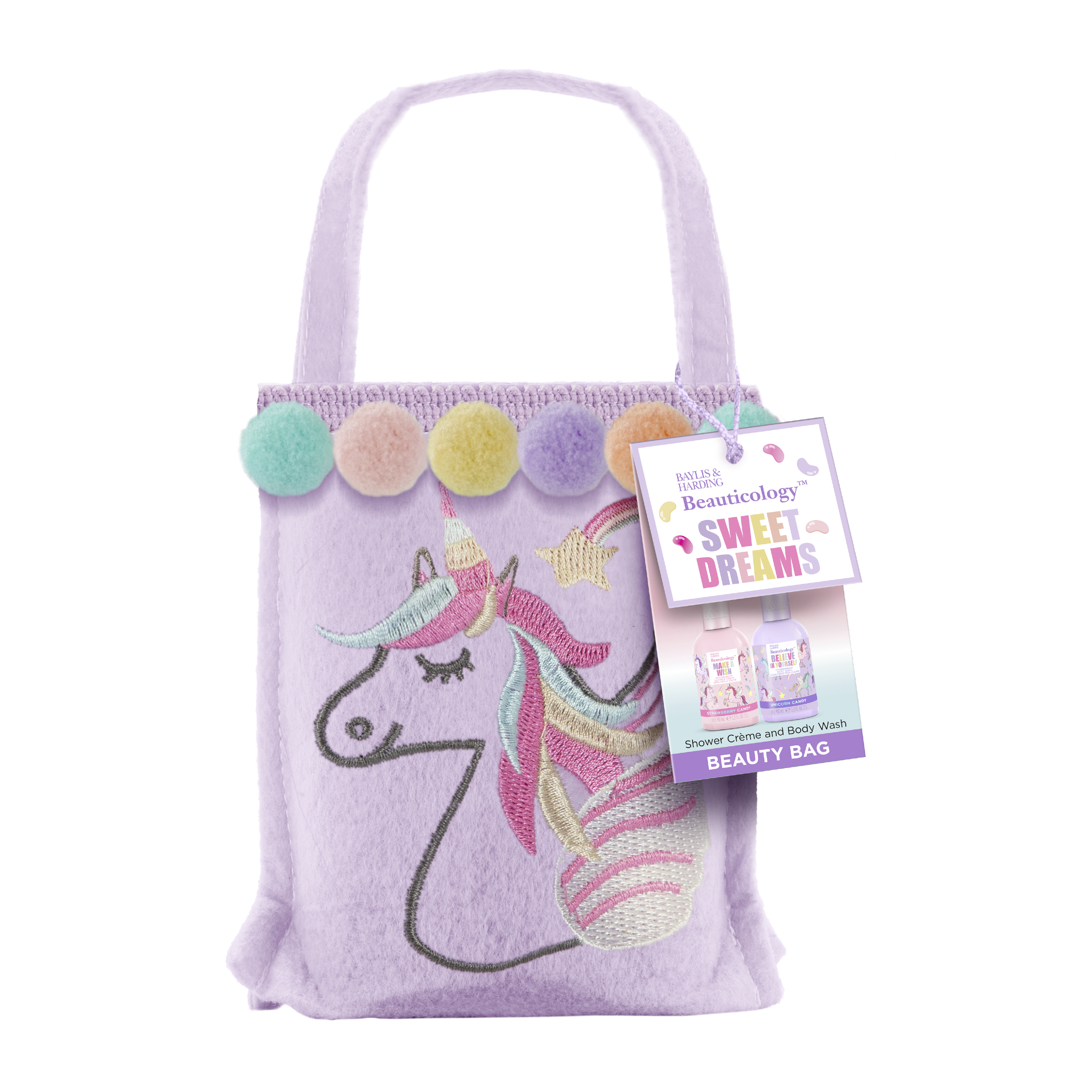 Sada sprchového krému a tělového mýdla s vůní cukrovinek a jahodových bonbonů v plstěné kabelce s jednorožcem. Obsahuje sprchový krém 100ml a tělové mýdlo 100ml. Zábava, jednorožci, vůně cukrovinek a pocit štěstí zahalí pokožku těla a dodají mytí to správné kouzlo. Produkty vytváří bohatou, krémovou pěnu, jsou šetrné k pokožce a zanechávají ji hebkou a vláčnou na dotek. Plstěnou mini kabelku s jednorožcem využije každá malá slečna i na další nezbytnosti a také jako stylový doplněk k outfitu. Vegan & Cruelty-Free.
