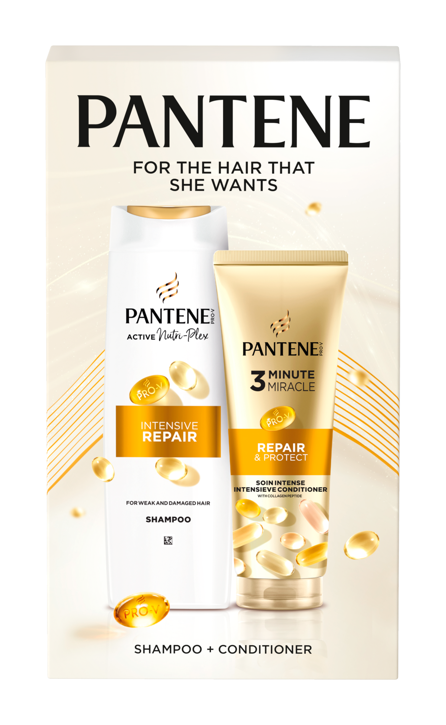 Objevte sadu výrobků Pantene Intensive Repair, skvělého zdroje výživy a ochrany vašich vlasů. Jemný vzorec s PRO-V a inovativní technologií ACTIVE NUTRI-PLEX čistí vlasy a dodává jim nezbytné živiny. Použití s naším kondicionérem pomáhá opravit* známky poškození, jako je nedostatek hladkosti a lesku, posilující** vlasy zevnitř. Testováno Swiss Vitamin Institute.