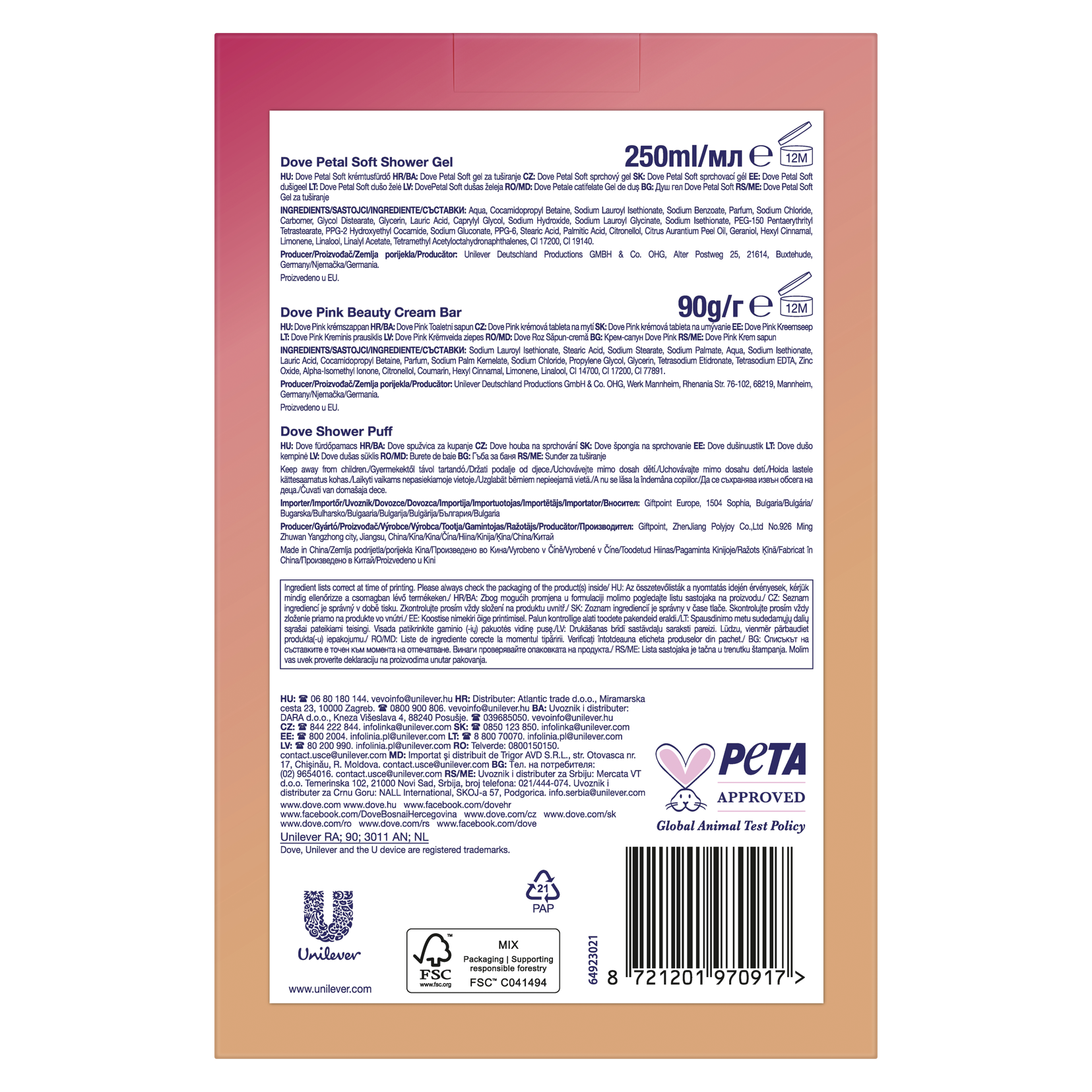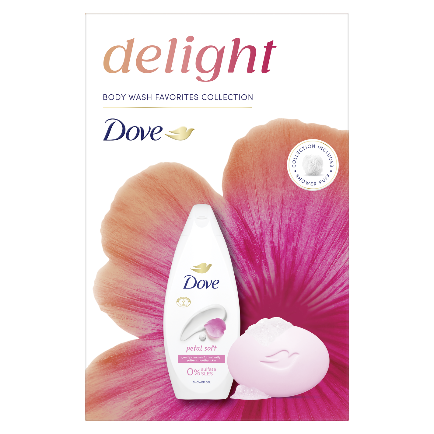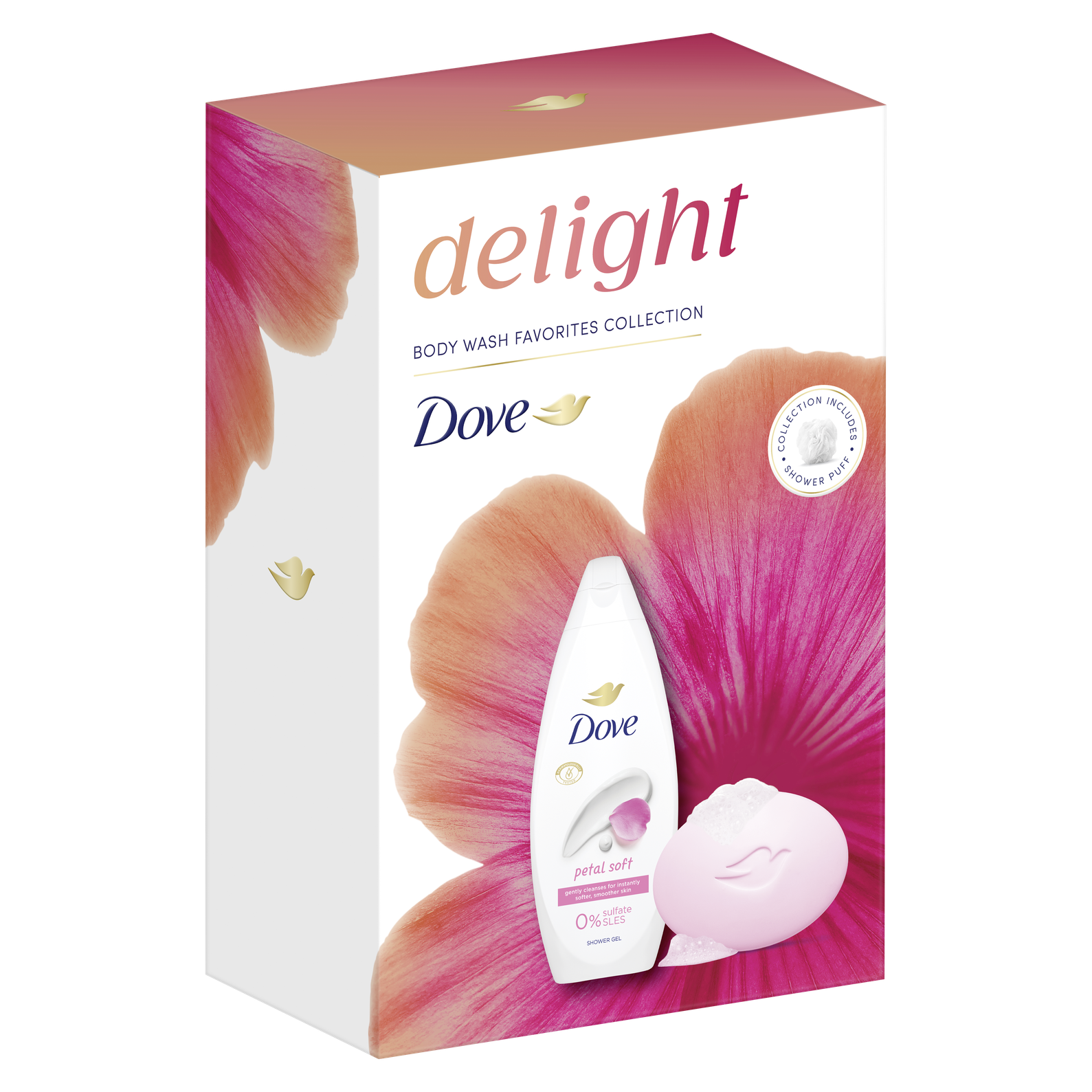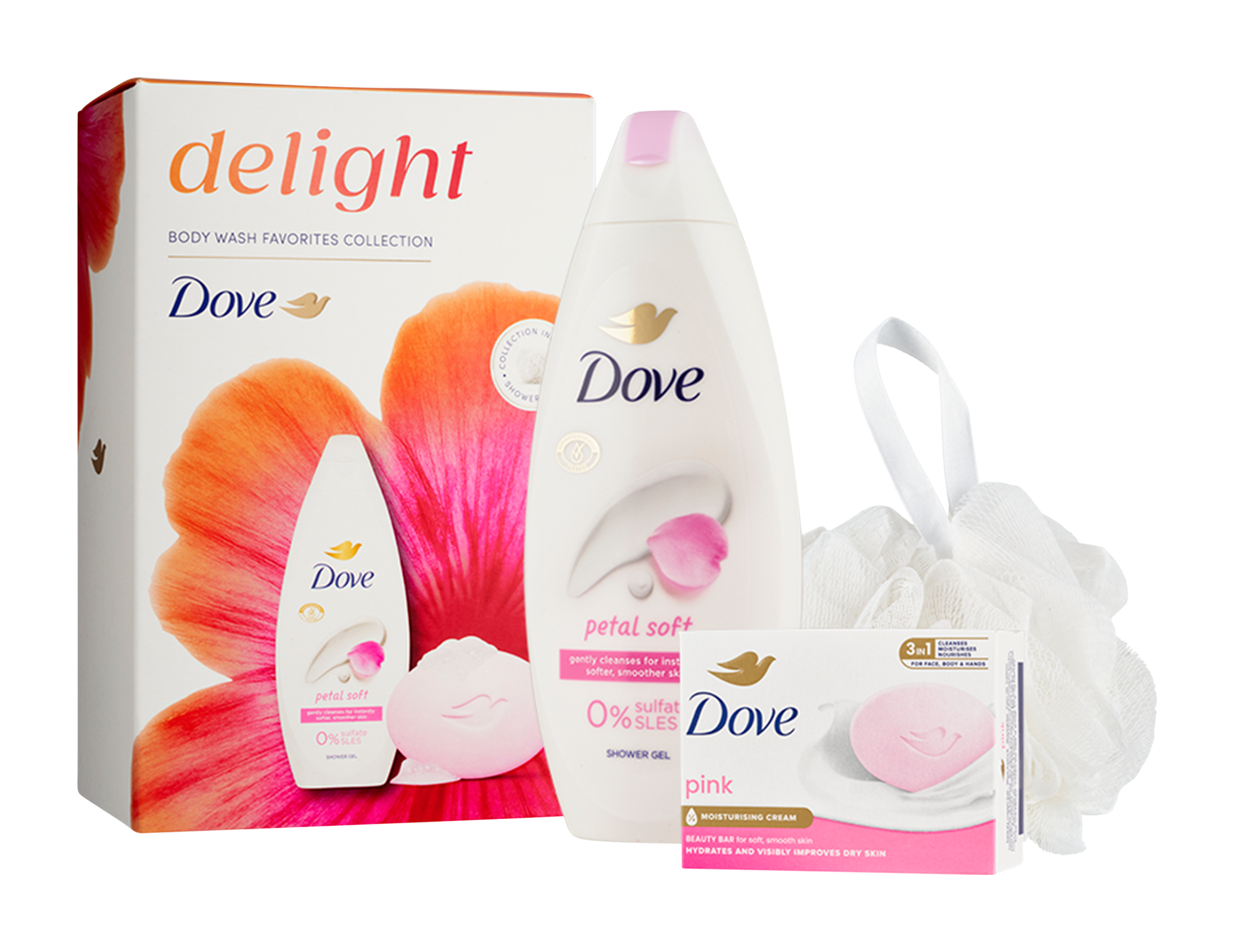 Hledáte ten pravý dárek pro Vaši blízkou osobu? Vsaďte na jistotu. Připravili jsme pro vás dárek plný jemnosti a péče pro pokožku. Přesně to je vánoční balíček Dove Petal Soft se sprchovou houbou, který obsahuje hydratující sprchový gel, tuhé mýdlo a dárek. Dove sprchový gel Petal Soft s květinovou vůní jemně čistí pro okamžitě jemnější a hladší pokožku. Tajemstvím receptury sprchových gelů Dove je obsah hydratačních složek, které se přirozeně vyskytují v pokožce a rychle se vstřebají. Zároveň obsahují jemné bezsulfátové čisticí složky, složení je tedy vhodné i pro citlivější pokožku. Už po první sprše bude pokožka vláčnější a lépe hydratovaná. Spojení jemných čisticích složek a ¼ hydratačního krému s květinovou vůní po růžích a jasmínu v krémové tabletě Dove Pink zanechává pokožku jemnější, hladší a viditelně zdravější.