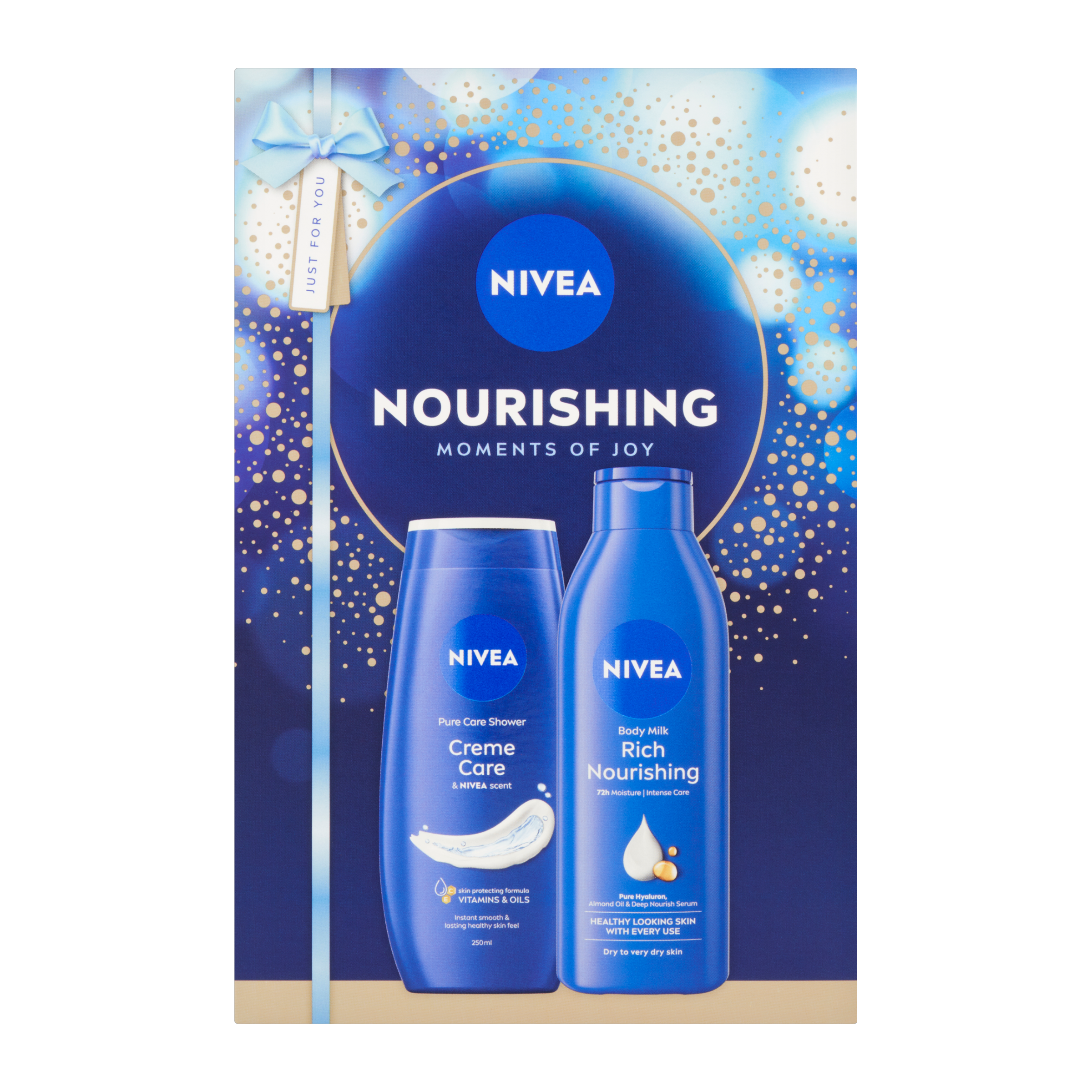 Vánoční dárek plný péče a lásky k pokožce. Mráz a vítr pokožku vysušují, proto je třeba se o ni náležitě postarat. Pečující sprchový gel Creme Care s vitamíny C a E pokožku hýčká už během sprchování a zabraňuje jejímu vysušování. Jedinečná vůně NIVEA navíc pohladí i vaše smysly. Po sprše péči dotáhněte krémovým tělovým mlékem Rich Nourishing, které namáhané suché pokožce dodá pořádnou dávku hydratace po 72 hodin. Pak už si jen užijte jemný pocit pohodlí a zdravě vypadající pokožku.